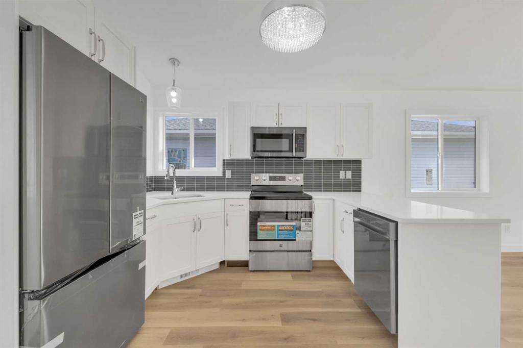 Looking for peace of mind and the comfort of a brand-new home in a quiet small-town setting? This beautiful new build might be the perfect fit! Located just minutes to Gull Lake and only a short drive to Lacombe, this home delivers all the small-town charm you're after - paired with the benefits of a modern home and new-home warranty. The main floor offers 3 generous bedrooms, including a large primary suite with a full ensuite, along with a bright and inviting open-concept kitchen and living room. The home feels great from the moment you pull up with GREAT curb appeal and a charming front porch and new sod. Inside enjoy modern finishes, tons of natural light, quartz countertops and premium LVP flooring throughout. A spacious 14x11 rear deck sits just off the back door overlooking a yard with plenty of space for your future garage build. The basement is ready for your ideas - high ceilings, egress windows, HE Furnace and HRV system, and a roughed-in future bathroom provide the perfect foundation to build additional living space and equity. The community of Bentley has so much to offer; including shopping, schools, grocery and essential amenities. Its a wonderful place to call home!