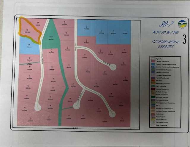 Building your dream home in the pristine Cougar Ridge Estates on a lot next to a green space that gives you the availability to design and develop a home with a walk-out basement on 3.63 acres. This building lot is a simple choice with endless access to the west country; walking trails and ten minutes from the Town of Rocky Mountain House with the bonus of only 4 minutes to Cow lake, will make you feel like your are living an endless holiday. Paved roads, serviced with power, natural gas, telephone line at the property line . Dry fire hydrant at the water reservoir across the street.