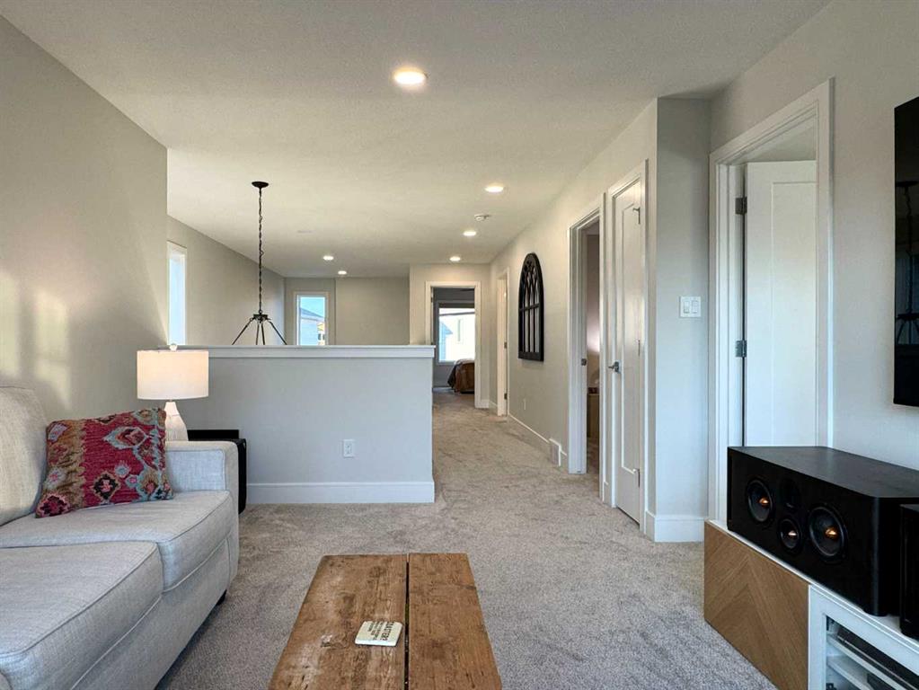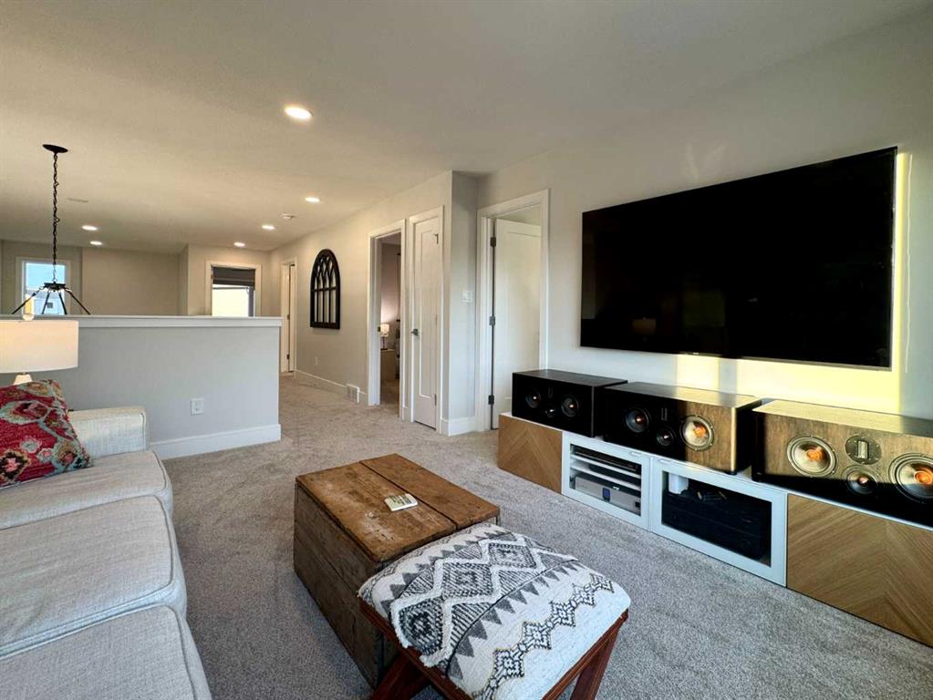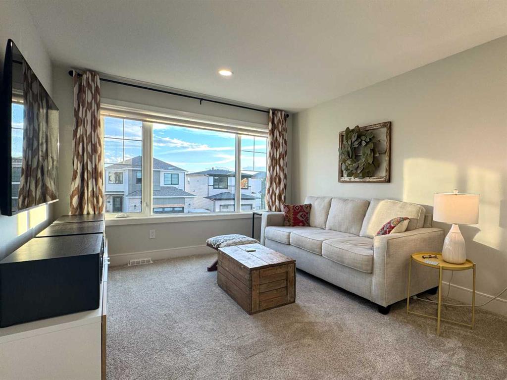 Welcome to 127 Goldenrod Road West, The Addison, a refined 2022 Stranville Living residence that blends modern sophistication with thoughtfully curated upgrades, offering a living experience that feels both elevated and effortless from the moment you arrive. The main floor impresses with its bright, open design, enhanced by upgraded designer lighting and a kitchen crafted for those who appreciate quality. Here, premium appliances including an induction cooktop, built-in oven and microwave, Fisher & Paykel refrigerator, and Blomberg dishwasher are paired with elegant finishes, upgraded fixtures, and a meticulously organized pantry with automatic lighting. Added custom shelving throughout the home elevates both form and function. Practical luxury continues with an organized mudroom, a pristine epoxy-coated garage floor, RV 20-amp outlet, and integrated smart home lighting and thermostat systems every detail curated to enhance convenience and comfort. Upstairs, three serene bedrooms await, with the primary suite offering a peaceful retreat complete with a 4-piece ensuite with a walk-in closet. A 5-piece bathroom and upstairs laundry with stacked washer/dryer provide everyday indulgence and ease. The fully finished basement extends the home’s versatility with elevated style: soundproofing, matching cabinetry and quartz, its own laundry, an impressive oversized wet bar, and generous living space ideal for hosting, relaxing, or future suite potential. Sophisticated extras including custom office shelving, mounted TVs, upgraded underlay, designer window coverings, and a dedicated coffee bar shelf add to the home’s elevated feel. Outdoors, the landscaped yard becomes a private haven. Relax beneath the pergola on the concrete patio, and appreciate features such as underground sprinklers, a retractable screen door, LED solar fence lights, and a beautifully designed BBQ shed with insulation and solar lighting. Gas lines run to both the yard and garage for seamless entertaining. Security and convenience continue with four exterior cameras and a doorbell camera. Sustainability meets luxury with a ‘fully paid for’ powerful 6,800-watt solar power system and permanent architectural exterior LED lighting, providing long-term efficiency without compromising style. Offering added confidence and value, this home includes several remaining years on its transferable new home warranty. With premium appliances on both levels included, this exceptional property is truly move-in ready, a rare blend of comfort, craftsmanship, and elevated living in every detail. For a closer look, please view the video walkthrough in the links tab or on YouTube by searching the home address.