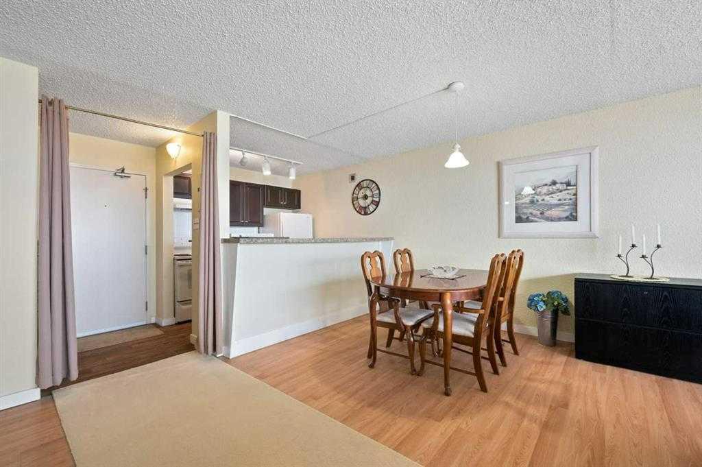 Bright End-Unit with Exceptional Views + Oversized Balcony This spacious End-unit one-bedroom condo offers unbeatable downtown living with a approx.. 275 sq. ft. balcony showcasing panoramic views of the city, river, and skyline. A stunning round feature window adds architectural character and floods the home with natural light. Just steps from City Hall, this spacious, open-concept suite includes secure covered parking and access to a full suite of amenities: a fitness centre, sauna, racquet court, three elevators, on-site management, free laundry on every floor, garbage chute, and comprehensive recycling/compost program. Perfect for first-time buyers, professionals, or investors seeking a bright, well-designed unit in a prime location. Easy to view! Note: Photos were taken prior to previous tenant's occupancy to maintain privacy.