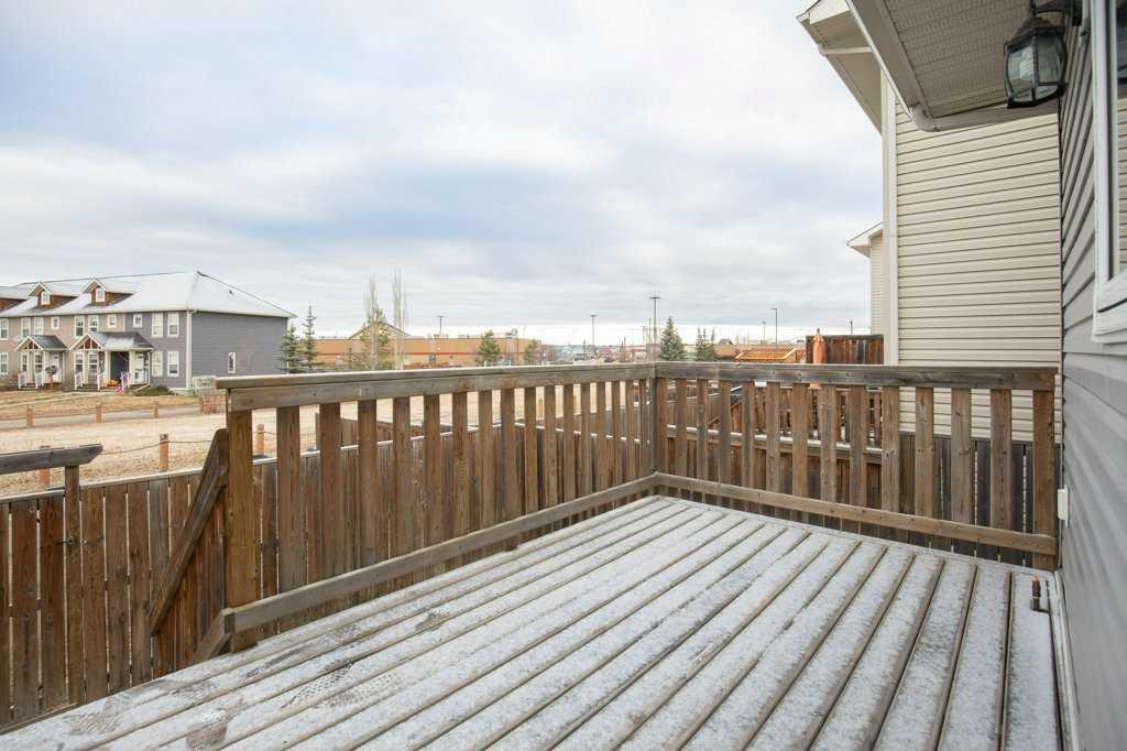 An INCREDIBLE OPPORTUNITY for a FIRST TIME BUYER or INVESTMENT PROPERTY! This two story end unit is situated in the sought after neighborhood of Ryders Ridge. The location is ideal, park the car and walk to everything you need! Conveniently close to schools, shopping, and restaurants. The earth tone exterior is accented with stone work and a covered entrance. The home features a functional floor plan that flows beautifully. The large entry way is tiled and offers immediate access to the charming home office. The kitchen features rich dark cabinetry with crown molding and sleek black appliances. Dine inside or step thru the garden door to enjoy the evening sunsets on the patio. The backyard is fully fenced for the kids and pets to safely play. Head upstairs to relax in the spacious primary bedroom, boasting a wonderful walk-in closet. Two additional bedrooms and a 4-piece bathroom complete this upper level. The basement awaits your finishing touches, but currently provides loads of storage space and the bathroom plumbing has been roughed in. Laundry is also located on this lower level. Come discover this RARE OPPORTUNITY. This turnkey property has been well maintained and won't last long on the market!