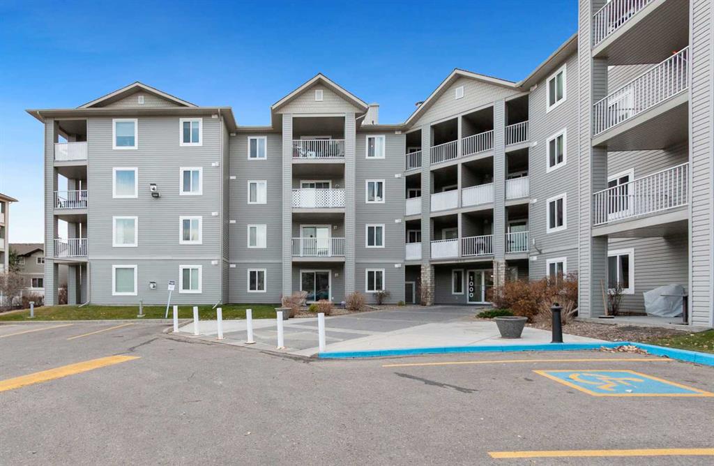 This exceptionally clean condo offers a welcoming layout from the moment you step inside. The entry opens into a spacious, open-concept living room featuring a cozy fireplace and direct access to the balcony, perfect for relaxing. The modern kitchen is bright and functional, complete with white cabinetry, roll-out drawers, generous counter space, and tile flooring. It connects easily to the dining area, which comfortably fits a dining table. The primary bedroom is a great size and includes a walk-in closet and private ensuite. The second bedroom works well for guests, family, or a home office. The main bathroom includes an accessible walk-in style tub/shower conversion designed for ease and safety. Tile flooring runs through the kitchen and bathrooms, with vinyl plank flooring throughout the rest of the home for a clean, updated look. A full laundry room adds everyday convenience, equipped with a full-size washer and dryer plus ample storage. Recent updates include newer windows and a newer patio door, and the assigned parking stall is located right at the front entrance for quick access. Set in the heart of Airdrie, this condo is close to shops, pathways, and parks giving you a comfortable low-maintenance living in a prime area of the city.