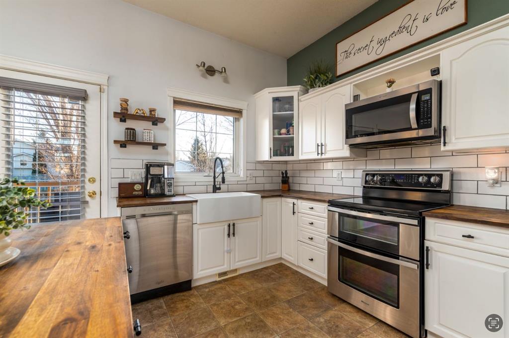 Discover this one-of-a-kind two-storey split tucked away in a highly sought-after cul-de-sac in College Park, just blocks from the school. Warm and inviting, the home welcomes you with a formal living room featuring hardwood floors and a beautiful three-sided gas fireplace. The kitchen has seen a modern, on-trend upgrade with crisp white cabinetry and butcher-block countertops, and flows effortlessly into the cozy family room. The main level also offers a practical mudroom and an above-grade guest room or office—ideal for today’s flexible living needs. Upstairs, you’ll find a spacious primary suite with an updated ensuite featuring dual sinks and a custom oversized tiled-in shower, along with an additional second-floor bedroom perfect for family or guests. Conveniences abound with main-floor laundry, central air conditioning, and a separate garage entrance with a drive-through overhead door leading to the backyard—a rare and highly functional feature. The basement extends your space with another bedroom and a large rec room/games room—perfect for relaxing or entertaining. Outside, the south-facing backyard provides abundant natural light and the privacy of mature trees, creating a peaceful place to unwind. Move fast—there’s still time to call this beautiful home yours before Christmas!