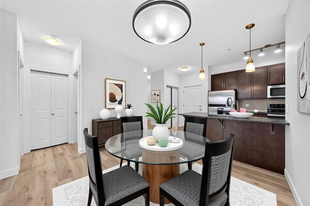 Welcome to this bright & beautifully updated 940 sqft apartment in the heart of Arbour Lake! This spacious 2-bedroom, 2-bathroom unit features a flexible den—perfect for a home office, guest room, storage, extended wardrobe...use your imagination!Step inside to brand new luxury vinyl plank (LVP) flooring that flows seamlessly throughout the living space, creating a modern and low-maintenance finish. The kitchen boasts granite countertops and a thoughtful layout of functional cabinet space. Store the bulk Costco hauls in the storage space tucked at the end of the kitchen. The open layout is surrounded by generous windows that flood the home with natural light, giving it an open, airy feel.The living room provides a warm and welcoming gathering space around the gas fireplace for winter evenings. The primary bedroom includes a walk-through closet and a private ensuite, with the second bedroom conveniently located near the second full bath. In-suite laundry adds convenience, and you’ll appreciate the two designated parking stalls in the secured underground parkade.LOCATION: Positioned just steps from the Crowfoot LRT station, commuting couldn’t be easier — whether you're heading downtown or to the University of Calgary. Major roadways like Stoney Trail, Crowchild Trail, and Sarcee Trail are all nearby, giving you excellent access to the rest of the city. Arbour Lake is known for its private lake community, with year-round recreation including swimming, boating, ice skating, and pathway systems for walking or biking. You’re moments away from Crowfoot Crossing, a bustling outdoor retail hub with over 240 shops and services. Grocery needs are well met with nearby Safeway, Co-op, Community Natural Foods, and Amaranth Whole Foods Market. For recreation, the Melcor YMCA offers fitness programs, pools, and community space. Prime location, versatile layout with almost 1000sqft of updated living space, 2 parking stalls - perfect for first-time homebuyers or investors. Take advantage of the opportunity and dive into this property.