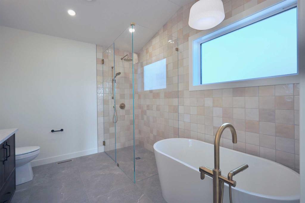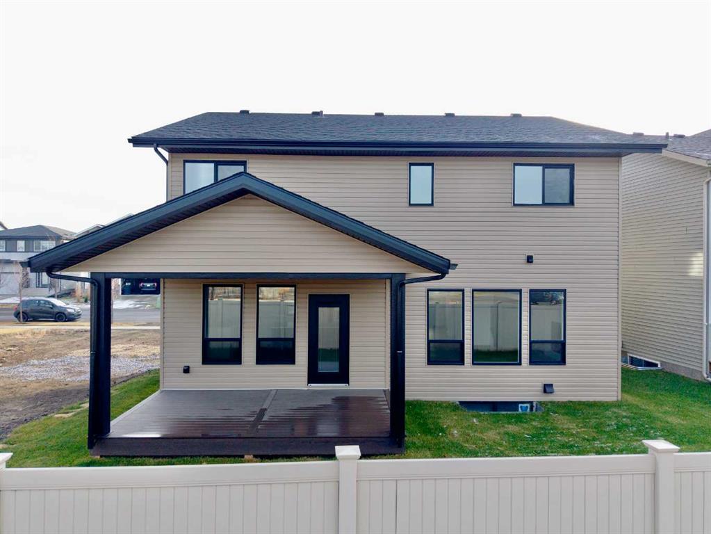 This stunning custom-built home by Avera Homes sits in the heart of Evergreen, one of Red Deer's most desirable and thoughtfully designed communities. Evergreen is where nature is at your door, and multi-use trails connect seamlessly to the city’s renowned trail system making outdoor recreation an everyday experience. Featuring four spacious bedrooms, a large bonus room, and an upper floor laundry room with built-in sink, this home is designed for modern family living with elevated comfort and style. From the moment you arrive, you’ll notice the attention to detail—from the covered front entry with composite decking to the striking designed exterior with unique custom arches that enhance the architectural beauty of this home. Step inside to discover a spacious, light filled layout featuring vaulted ceilings, 9' walls and of course the heart of the home is a chef’s dream kitchen, showcasing premium level quartz countertops, a massive 5' x 10' hickory island with a farmhouse sink, and bespoke cabinetry throughout. Riobel brushed brass plumbing fixtures, ultra-clear curb-less glass shower enclosure, and a freestanding one-piece tub bringing spa level luxury to the bathroom. Every element of this home has been carefully upgraded. ~ Custom light fixtures and lighting plan ~ Solid white maple railings ~ Venetian plaster custom designed fireplace and range hood ~ Upgraded appliances and flooring ~ Custom tile and door hardware ~ Spray foamed garage ceiling and wall cavities for enhanced comfort in the primary suite. The outdoor living space is just as refined with a covered rear deck finished in composite decking perfect for year round enjoyment. The undeveloped basement is roughed in for in floor heat and ready for your personal touch, ideal for expanding your living space as needed. This home is more than just a place to live,, it’s a statement of craftsmanship, comfort, custom design and precision design throughout the interior and exterior. Every detail has been carefully curated to offer a truly one of a kind living experience, blending modern elegance with timeless architectural features. From premium finishes to thoughtful upgrades throughout, this property is a must see for discerning buyers who value quality and character in every square foot.