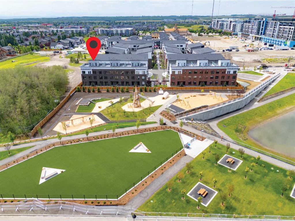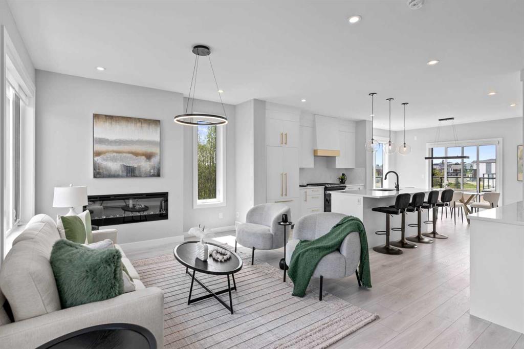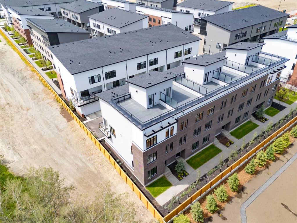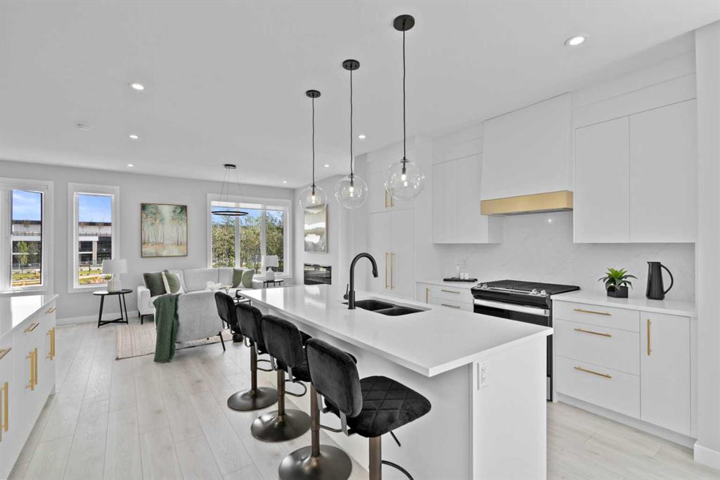 Welcome to #501 in the District Townhomes complex in West Springs, Calgary. This executive end-unit townhome. offers upscale living with premium finishes and exceptional outdoor space. The open-concept main floor is filled with natural light from the southwest-facing balcony and features wide-plank flooring, lofty ceilings, and a chef-style kitchen with full-height cabinetry, quartz countertops, gas range, built-in microwave, refrigerator, and a large island with breakfast bar. The spacious dining area opens to the balcony, while the living room is anchored by a sleek 50" electric fireplace. Upstairs, you'll find two large bedrooms, each with walk-in closets and private ensuite baths, plus convenient upper-floor laundry. The entry-level flex room—perfect for a home office or guest bedroom—is accessible from both the front entrance and the heated double garage. One of the few units in the development to include a private rooftop patio, offering 270° views, including the mountains ...ideal for entertaining or enjoying sunset evenings. Located in a quiet, private setting, this townhome combines modern design with low-maintenance luxury living. Roughed-in for security, vacuflo, air conditioning and home networking. West District is a dynamic and trendy neighbourhood that offers a rich shopping and dining experience. Enjoy local shops, restaurants, grocery, fitness, and medical services. Featuring a focus on pedestrians, the main streets highlight twenty foot wide sidewalks complete with integrated walkway and bike paths. In the heart of West District is the central Radio Park featuring a recreation area with a basketball court, skatepark, amazing new playground, ice skating in the winter, summertime farmer’s marekts and events, live concerts and festivals at the outdoor amphitheatre and much more. Located just 15 minutes from downtown Calgary, 5 minutes from top public and private schools, and 45 minutes to Canmore,