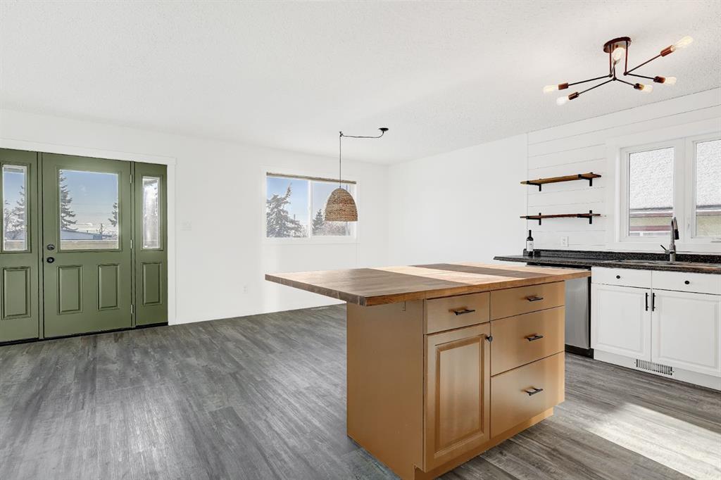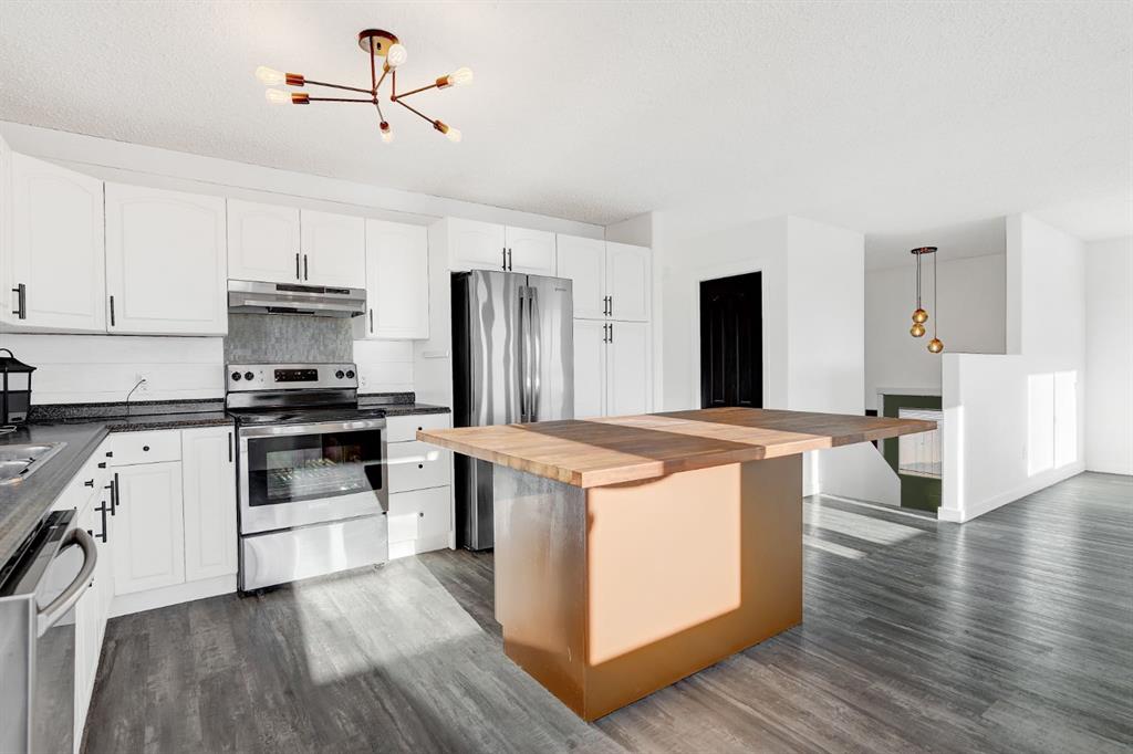Welcome to this modern and spacious 5-bedroom, 2.5-bathroom home featuring a newly fenced yard and two decks. Step inside from the brand-new side patio deck and you’re greeted by a bright, open-concept living space. The kitchen offers lots of cabinetry, generous counter space, and a functional island, perfect for cooking and entertaining. The adjoining dining area and living room feel warm and inviting, enhanced by large south facing windows and a stylish modern fireplace. The main floor includes a large primary bedroom with a private ensuite, plus two additional well sized bedrooms (one currently converted into an oversized walk-in closet) and a full bathroom. The fully developed basement (completed in 2022) provides even more living space, featuring a spacious family room, a full bathroom with a walk-in shower, and two large bedrooms, each with ample closet space. A separate laundry room and multiple storage areas complete this lower level. With its generous windows, the basement feels bright and welcoming. This home offers modern comfort inside and out!