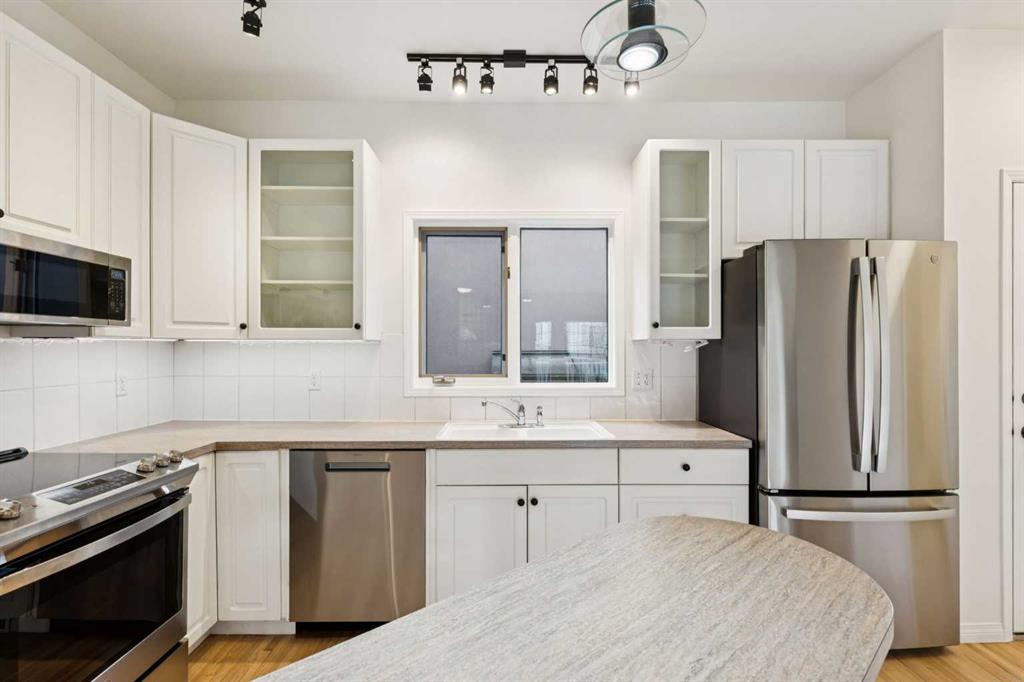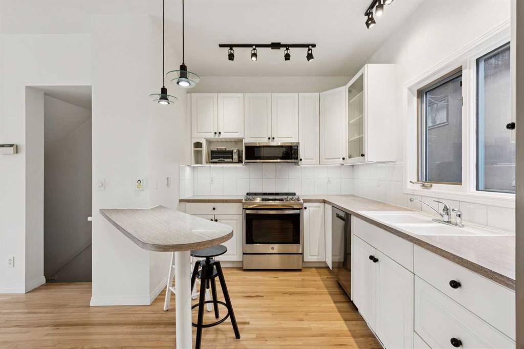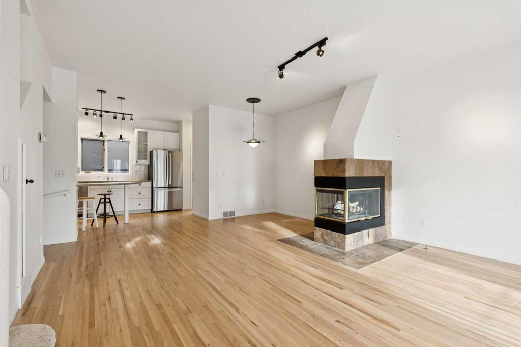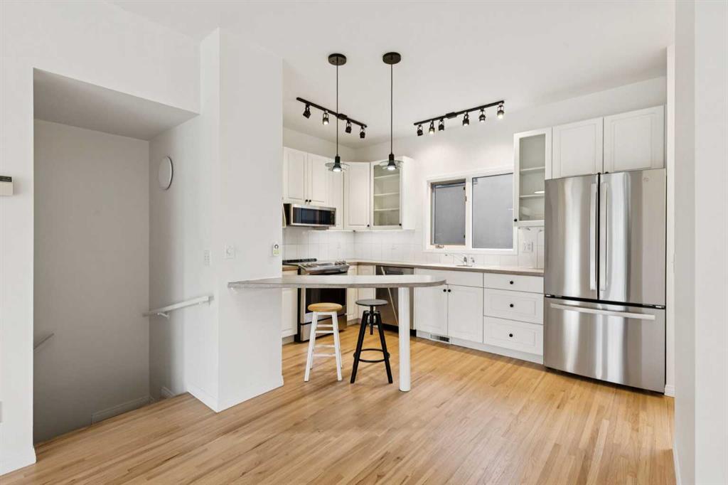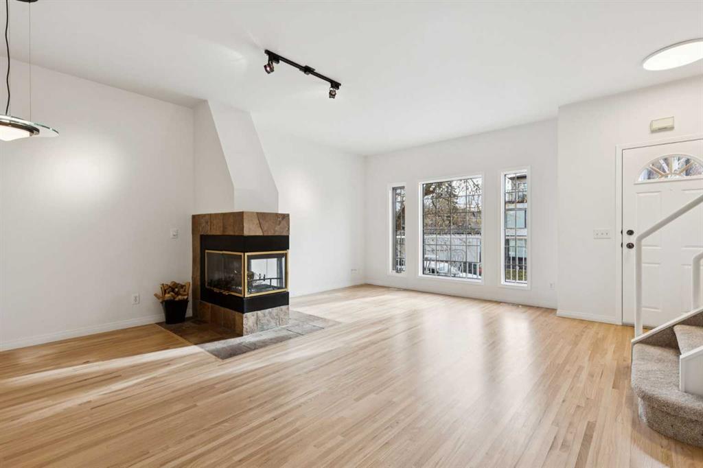 Welcome to this newly updated townhome on a beautiful tree-lined street in the sought-after community of Killarney. This 2 bedroom, 2 bathroom home offers exceptional parking with a double attached garage, driveway, and an additional assigned stall off the alley—a rare find that must be seen in person to be fully appreciated. From the moment you arrive, the curb appeal draws you in with an inviting front balcony where you can sip your morning coffee and enjoy the canopy of mature trees out front – it’s giving brownstone vibes. Inside, you’re greeted by fresh paint throughout, gleaming refinished hardwood floors, and a bright, airy open-concept living space. Natural light pours through large south-facing windows, filling the living room with warmth and highlighting the cozy wood burning/gas fireplace. The kitchen overlooks the dining and living areas to create a seamless space for entertaining and features a brand-new suite of appliances: stove, dishwasher, refrigerator, fan/microwave, and toaster oven. The main floor is complete with a powder room and access to the back deck, perfect for your gas BBQ. Upstairs, with brand new carpet underfoot, you’ll find the showpiece primary bedroom with vaulted ceilings, new windows, a walk-in closet, and a large 4-piece ensuite. Beneath the new carpet in the walk-in closet is rough-in plumbing for a potential second bathroom (sink and toilet), offering future flexibility. A spacious second bedroom completes the upper level. The lower level features a meticulous double attached garage with painted floors and a newly insulated garage door, plus a laundry room/flex space for extra storage or a hobby area. This rare opportunity combines inner-city convenience, modern comfort, and timeless charm. You’re just steps to Killarney’s amenities, including the Killarney Aquatic & Recreation Centre and 17th Avenue, with a quick commute to Marda Loop and downtown. Westbrook Mall and the C-Train station are also within easy walking distance. With flexible possession available, this is your chance to secure a special home in one of Calgary’s most desirable neighbourhoods. Book your private showing today and experience all that this Killarney townhome has to offer!