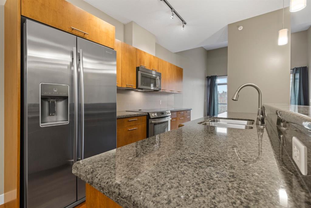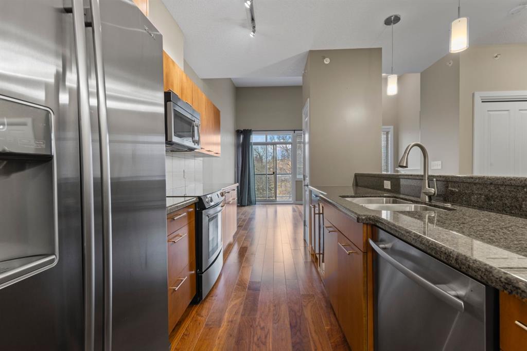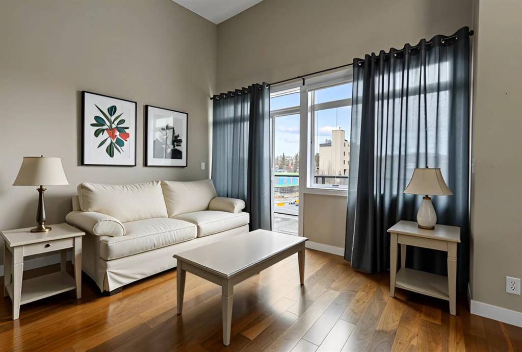 Welcome to The Nine! a bright, stylish, and inviting top-floor condo perfectly situated in the sought-after community of Hillhurst. Offering over 1,500 sq. ft. of thoughtfully designed living space, this home places you just steps from Kensington’s vibrant shops and restaurants, and only minutes from SAIT and the Jubilee Auditorium. Spread across two spacious levels, the upper floor features an open-concept layout ideal for both relaxing and entertaining. The gourmet kitchen is equipped with granite countertops, stainless steel appliances, and a built-in wine fridge. The living room, complete with vaulted ceilings and expansive windows, is filled with natural light throughout the day, creating a warm and welcoming atmosphere. The lower level offers excellent functionality with a cozy den, convenient in-suite laundry, a full 4-piece bathroom, and two generously sized bedrooms. The primary bedroom includes its own 4-piece ensuite and walk-in closet, providing plenty of comfort and privacy. Residents can enjoy great building amenities such as a large storage locker, secure bike rooms, and access to the Urban Athlete fitness centre. This standout unit also includes two heated, titled underground parking stalls, a rare and valuable feature. This condo truly has it all, space, style, location, and convenience. Don’t miss your chance to see it for yourself.