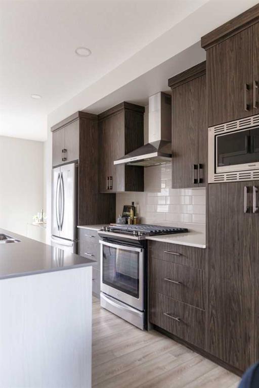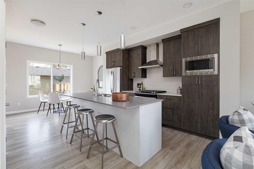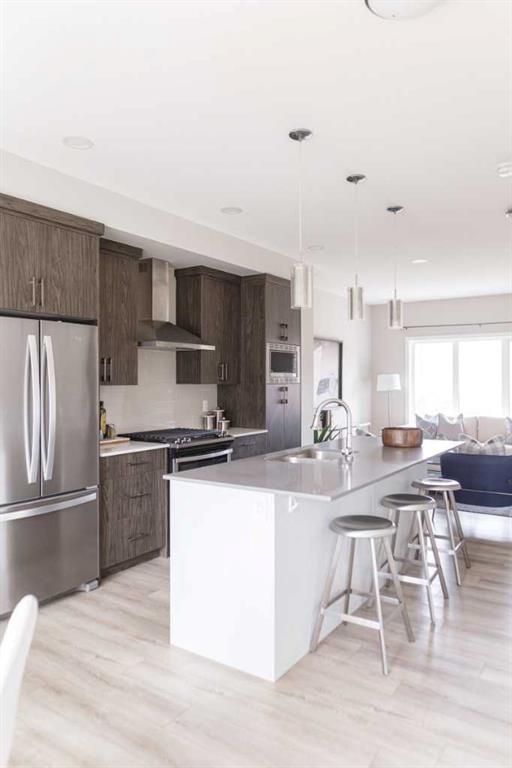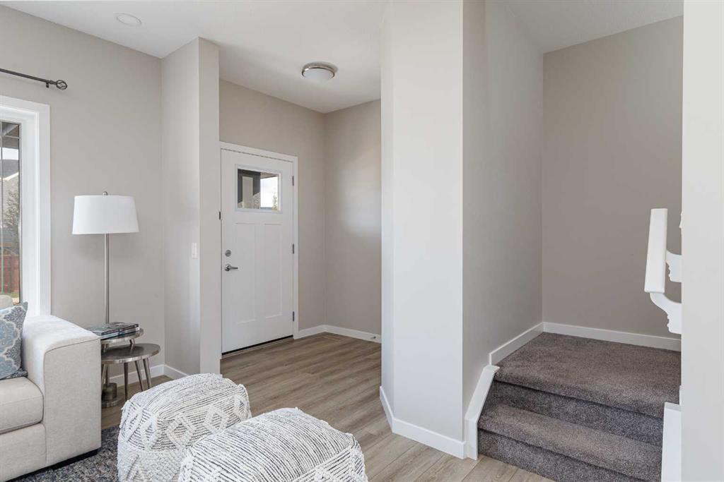 Welcome to this beautifully maintained 3-bedroom, 2.5-bathroom semi-detached home, built in 2020 by Excel Homes, located on Sunrise Way—a quiet, no-through street in one of Cochrane’s most desirable communities, Sunset Ridge. With 1,370 square feet of well-planned living space, this home offers comfort, style, and a layout that’s perfect for both family life and entertaining. The heart of the home is a central kitchen, featuring a large island with seating, a generous family-sized pantry, and plenty of cabinet space and deep drawers—making hosting and daily life effortless. Bright, open living and dining areas are framed by large windows that fill the space with natural light. Upstairs, you’ll find three spacious bedrooms, including a private primary suite and a full 4-piece bath. The unfinished basement offers high ceilings and is roughed-in for both a bathroom and laundry, allowing room to grow or add personal touches down the line. Step outside and enjoy the fully landscaped backyard, complete with low-maintenance turf—ideal for relaxing or playing without the weekend chores. A full-sized detached double garage provides secure parking and additional storage. Sunset Ridge is known for its scenic views, friendly atmosphere, and wide range of amenities—including nearby walking paths, playgrounds, and a local elementary school just a short stroll away. With shops, cafés, and services all within easy reach, this is a vibrant community designed for convenience and connection. Don’t miss this opportunity to own a move-in ready home in a growing neighbourhood with timeless appeal. Book your private showing today!