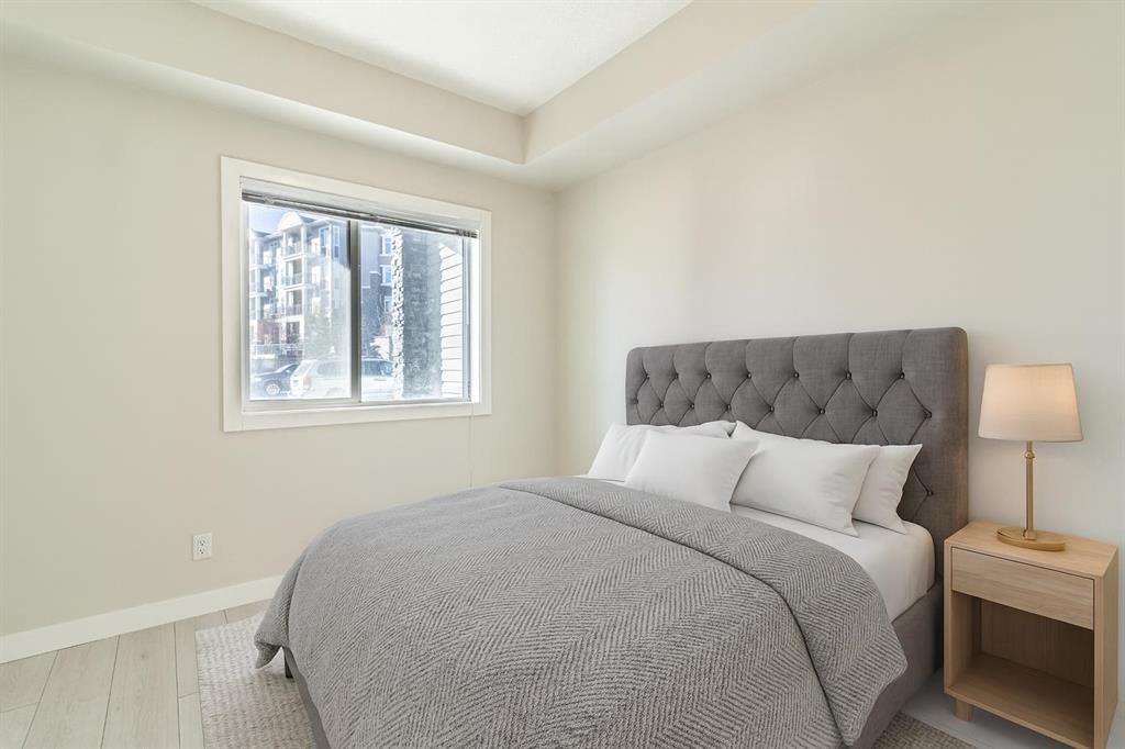 Welcome to this beautifully maintained, freshly repainted and professionally cleaned 2-bedroom plus den, 2-bathroom condo in the highly desirable and family-friendly community of Sage Hill, offering heated floors, 9 Foot Ceilings, titled underground parking, and true move-in readiness just in time for the holidays. From the moment you walk in, the bright and airy south-facing open-concept layout creates an immediate sense of comfort and warmth, while the thoughtfully designed kitchen brings both elegance and function with its stainless steel appliances, modern backsplash, quartz countertops, large center island that doubles as a breakfast bar, generous cabinetry, dedicated pantry, and spacious sink, making everyday cooking feel enjoyable and effortless. Adjacent to the kitchen is a versatile den, perfect for a private work-from-home setup, study space, hobby nook, or extra storage depending on your lifestyle needs, and with in-suite laundry conveniently located, you won’t need to step outside or share common facilities for day-to-day routines. The layout is ideal for couples, small families, roommates, or guests, with two generously sized bedrooms positioned on opposite sides for enhanced privacy; the primary bedroom features its own walk-through closet and modern 4-piece ensuite, while the second bedroom enjoys easy access to another full bathroom, making the space both practical and comfortable for long-term living. Large windows throughout invite an abundance of natural sunlight that enhances the warm tones and open design, while the main floor patio offers easy outdoor access for fresh air, lounging, pet convenience, or simply stepping out to enjoy a stroll around the community. This well-managed, pet-friendly building includes heat, water, and professional management within the condo fees, along with secure, heated, and monitored underground parking plus additional bike storage, perfect for year-round commuters and active lifestyles. The location is exceptional — steps from a nearby bus stop, minutes from major roads, and within walking distance to the Sage Hill shopping district where you’ll find restaurants, cafés, fitness options, and popular retailers including Walmart and Dollarama. Nature lovers will appreciate that the complex backs onto a scenic ravine with walking paths ideal for peaceful evening walks, jogging, or taking your dog out for fresh air. Positioned toward the quieter back side of the building, the unit offers privacy and convenience, with quick access to the parkade just a few steps from the front door, eliminating long hallway walks with groceries or winter gear. Offering a perfect blend of comfort, lifestyle, and location, this inviting home truly has everything you need — simply unpack, settle in, and enjoy modern living in one of Calgary’s most sought-after NW communities. Don’t miss your chance to view this exceptional property and experience it firsthand — book your showing today!