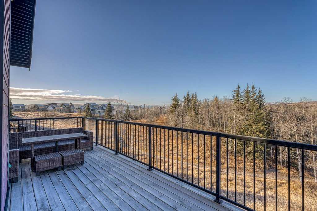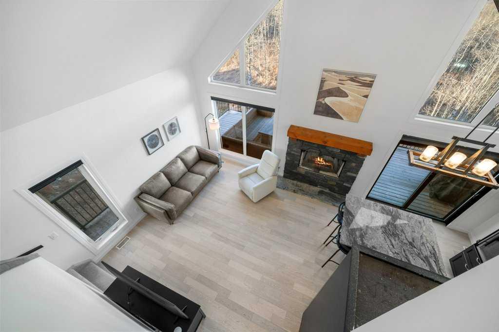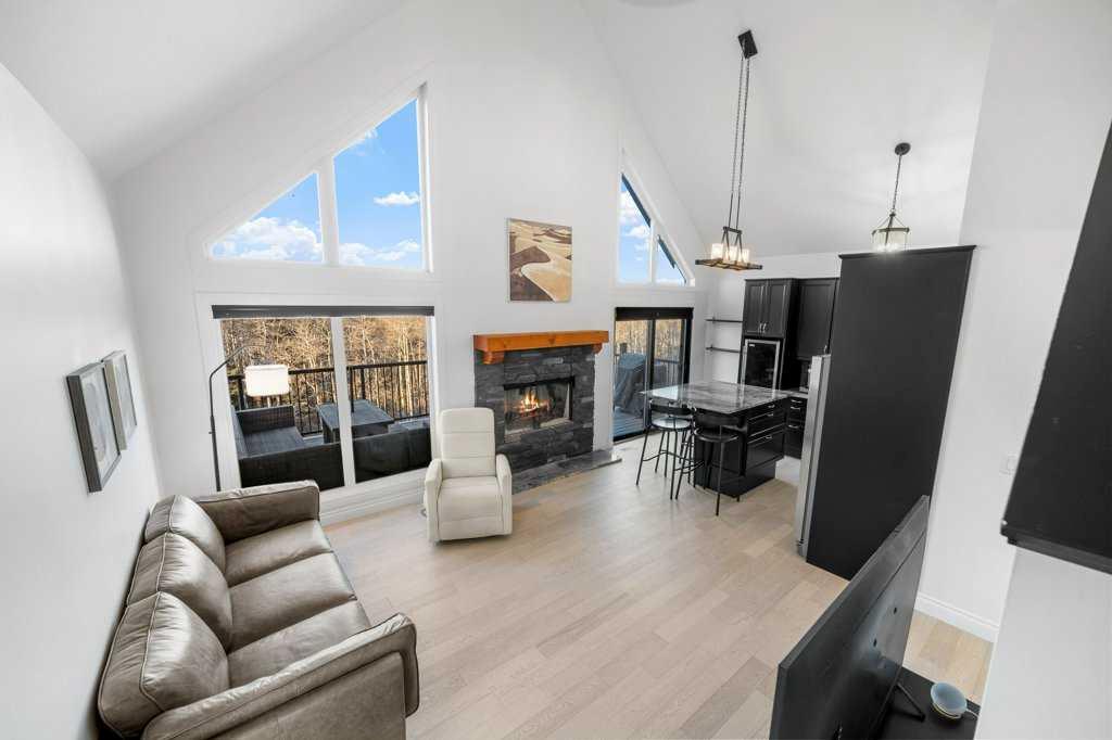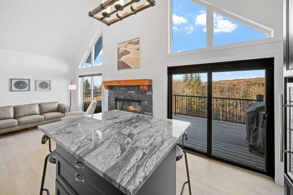 Perched in one of the most coveted locations within the community, this beautifully updated one-and-a-half story home captures the very best of lake living. Step inside through the convenient entryway to discover an open-concept living space where soaring windows frame unobstructed west-facing mountain views that will take your breath away morning and night. Fresh paint and new flooring throughout create a move-in-ready canvas, while the central wood-burning stone fireplace anchors the main living area with warmth and character.The main level thoughtfully offers two bedrooms alongside a full bathroom, ideal for family or guests. Ascend to the lofted primary suite—a private retreat with its own ensuite bathroom. Natural light pours through every corner of this home, making even the grey days feel bright.The developed basement extends your living space with a cozy family room or ideal space for a fourth bedroom, giving you flexibility as your needs evolve. With over 1500 square feet of living space the possibilities are endless. Outside, the expansive wraparound deck overlooks the ravine with nothing but nature and mountains beyond—no neighbours to interrupt your view. Located on one of the larger lots in Phase 1 at 5,401 square feet, the freshly landscaped property includes a crushed stone driveway leading to a double detached garage with the potential for an additional guest suite.Living here means more than just a beautiful home. A quick stroll brings you to the exclusive clubhouse where resort-style amenities await: boat launch, indoor pool, outdoor hot tub, tennis courts, gym, commercial kitchen, BBQs, and a wood-fired pizza oven on the huge sun soaked patio. Ideally situated within 30 minutes of both Calgary and the Rockies and only 15 minutes to Cochrane, Cottageclub delivers the best of both worlds—urban convenience meets mountain adventure at your doorstep. Enjoy this year-round recreational paradise with every amenity and service you could possibly want just a short drive away.