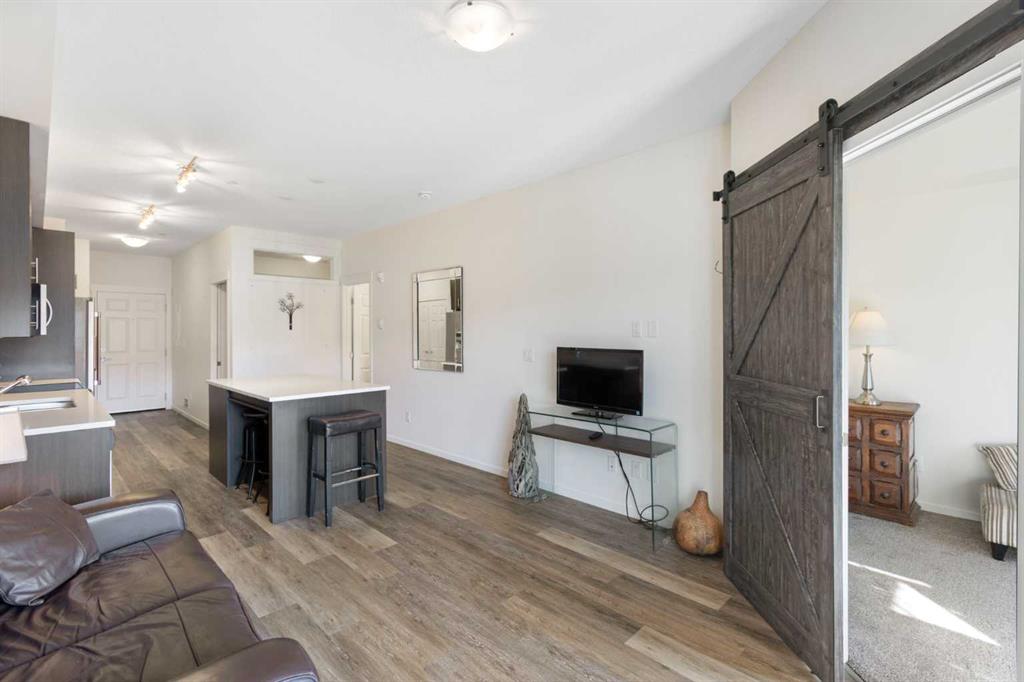 Welcome Home to modern, convenient living in Sage Hill Park! This beautiful 2-bedroom, 2-bathroom model offers an ideal blend of contemporary style and functional convenience. The open-concept layout is illuminated by 9-foot ceilings and features premium vinyl comfort plank flooring throughout the main living area. The gourmet kitchen is a chef's delight, boasting sleek quartz countertops, soft-close cabinetry, and a full stainless steel appliance package, including a fridge, stove, built-in dishwasher, and over-the-range microwave. Enjoy the privacy of the primary bedroom, which includes its own private ensuite. The unit provides added convenience with a gated walk-out patio, in-suite frontload laundry, and included window coverings. The purchase also includes a titled parking stall and an individual storage unit. Sage Hill Park provides a tranquil setting, backing onto a beautiful environmental green space and regional bike path. The location is exceptionally convenient: you'll be steps from shopping at Sage Hill Crossing and minutes from Beacon Hill Centre, featuring Costco and more. Enjoy nearby parks, pathways, and quick, easy access to Stoney Trail for your commute. Everything you need is truly right at your doorstep!
