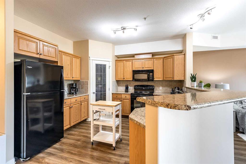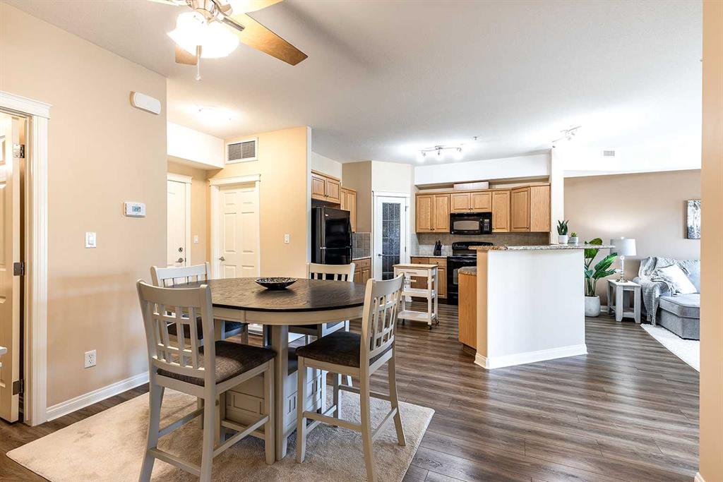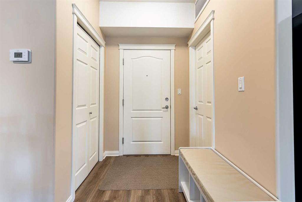 **Now and ready for immediate possession** Welcome to a refined condo living in Riverside. This beautifully maintained 2-bedroom, 2-bathroom home offers an elegant open-concept layout, ideal for both everyday comfort and effortless entertaining. The kitchen features rich oak cabinetry, generous counter space, breakfast bar, and a spacious pantry–providing both style and functionality. The adjoining living room is bright and inviting, centered around an electric fireplace that adds warmth and charm. From here, step out onto the balcony and enjoy serene prairie views. The primary suite is a bright retreat, complete with a walk-in closet and a well-appointed 3-piece ensuite. A second bedroom and full bathroom provide flexibility for guests or a home office, Includes the Murphy bed and custom Cabinetry! Additional highlights include in-suite laundry with a stacking washer and dryer, an assigned underground parking stall in the heated garage, and a convenient storage room located directly beside your parking space. This quiet, secure building is situated in one of Medicine Hat’s most desirable communities. Riverside is known for its mature trees, scenic walking trails, and close proximity to the South Saskatchewan River. You’ll find yourself just minutes from parks, shopping, dining, and the city’s vibrant Downtown core. Don’t miss this opportunity–contact a real estate agent today to arrange your private showing!