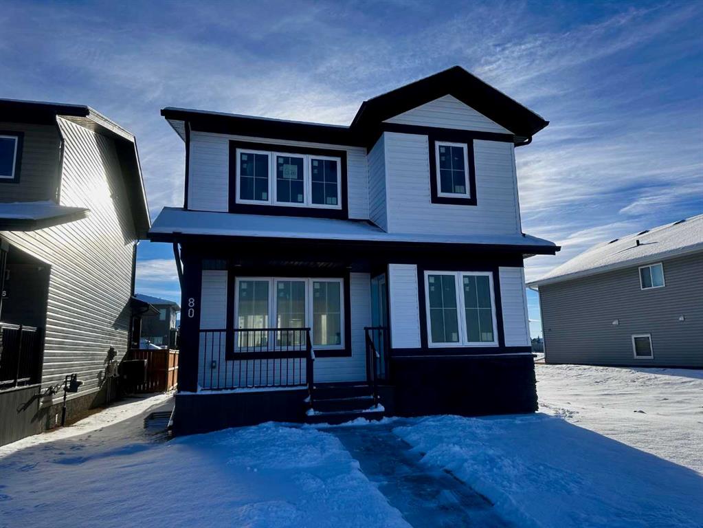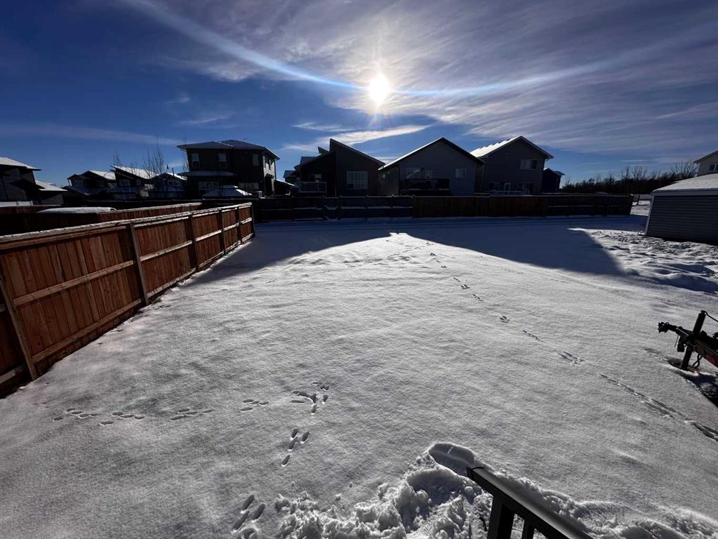 1528 sq ft of thoughtfully designed space with an open-concept main floor that will take your breath away. The gourmet kitchen features sparkling quartz countertops, massive island with eating bar, and flows seamlessly into the bright dining area and spacious living room — perfect for entertaining or everyday life. Patio door leads out to your south facing 16×10 uncovered deck for summer BBQs. Upstairs, enjoy three generous bedrooms, including a tranquil primary suite with walk-in closet and private ensuite, plus the ultimate convenience of second-floor laundry (no more hauling baskets up and down stairs!). All bathrooms throughout feature quartz counters. Basement is open and ready for future development with 9' ceilings and room for an additional family room, bedroom and 4 piece bathroom. Located just 12–15 minutes south of Red Deer yet surrounded by small-town charm, Penhold gives you the best of both worlds: walk to the state-of-the-art Penhold Regional Multiplex (arena, fitness centre, running track, library, gym), splash park, skate park, schools, playgrounds and miles of trails, while Costco, Southpointe Common, and other major shopping centres are an easy 10-minute drive north. Quiet streets, friendly neighbors, and that true community feel — this is where your family will put down roots and actually know the people next door. Soon to be Move-in ready and waiting for you! Final finishing is underway and lighting, paint and counters should be installed within the next week.