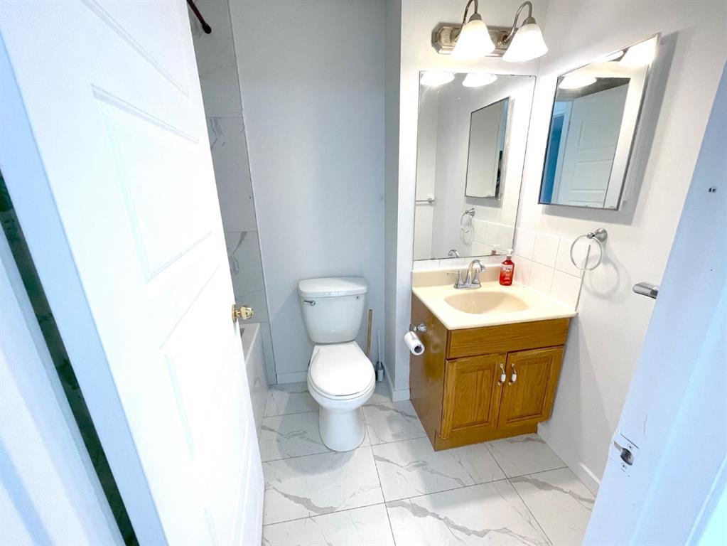Beautifully Updated Home with Modern Finishes Throughout This charming home welcomes you with a freshly painted interior, featuring updated walls, new receptacles, and modern covers for a clean, move-in-ready feel. The newly renovated kitchen shines with brand-new cabinets, range, countertops, and faucet, offering a stylish space that’s perfect for cooking and entertaining. The home’s upgrades continue with a brand-new bathroom, complete with a new tub, stylish tilework, and updated flooring. Fresh closet doors with sleek glass and metal frames add a contemporary touch, while new gas-filled vinyl windows enhance energy efficiency and comfort. This stunning home features three beautifully updated bedrooms, each fitted with modern, sleek closet doorsshowcasing elegant glass panels and a crisp white finish. The spacious primary bedroom easily accommodates a king-size bed with plenty of room left for additional furniture, creating a relaxing retreat you’ll love coming home to. The two additional bedrooms offer versatile space—perfectly sized for a double bed, a comfortable home office, or even a creative hobby room. The basement features attractive engineered wood flooring, creating a warm and inviting additional living space. Step outside to a paved rear courtyard, ideal for relaxing or hosting gatherings. This is thoughtfully updated home is ready for its next owner—modern, comfortable, and beautifully finished throughout. Don’t miss your chance to own this gorgeous 3-bedroom unit for under $350K! Homes like this go quickly—act fast!