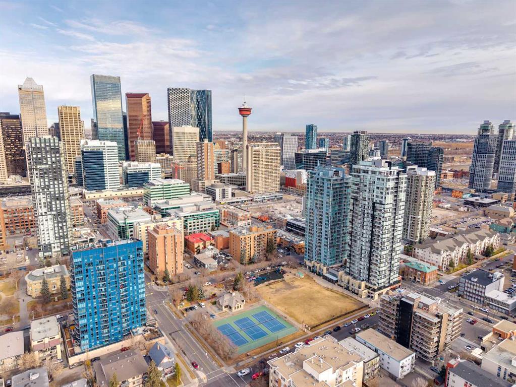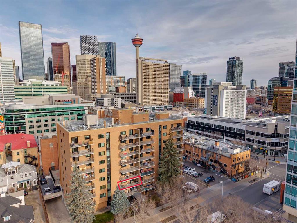 Welcome Home to Park Estates! This 2 bedroom unit is perfect for first time buyer and investors. With 869 sq ft of living space, the layout of this unit provides enough space for comfortable everyday living. The main living area is large enough for an L-Shape sofa and has a flex area for dining or office space. The kitchen is well appointed with full size appliances, breakfast bar and plenty of storage. Both bedrooms provide ample storage and bright natural light from the south facing windows. A renovated 4pc bath & in suite laundry with storage complete this unit. The windows were upgraded in the last 3 years and there are new counter-tops and floors throughout. The oversized south facing covered balcony offers views of Haultain Park. Amenities include, assigned covered parking, secure bike storage, coin laundry, fitness centre, sauna and large common area terrace. Situated in a neighbourhood rich with community, dining and nightlife! Right out your front door are the restaurants and pubs of 1st St SW, from 1st Street Market to a more refine Ten Foot Henry. Walking distance to the amenities, patios and nightlife of 17th Ave & 4 St SW. If that's not enough, save the hassle of rush hour and walk to Downtown. Convenient access to transit, MNP Community & Sport Centre & Macleod Tr SE. Quick Access to University of Calgary and Mount Royal University as well as Stampede Park & the new BMO Event Centre.