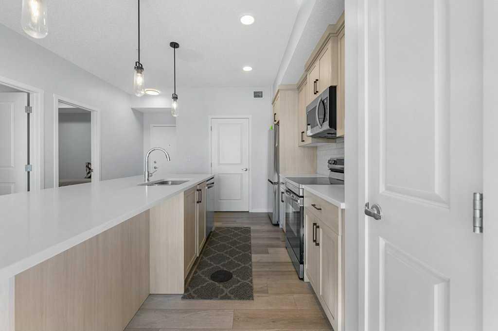 ***Watch 3D Tour*** Introducing a stunning and modern 2-bedroom 2 Bath Located in a prime area, this apartment is surrounded by all the amenities one could desire. This unit boasts plenty of natural light, making it a bright and welcoming space. The open-concept living room and kitchen with an island is perfect for entertaining guests. The kitchen is equipped with Modern Stainless steel appliances and ample storage space, making it the perfect space to cook and dine with loved ones .The Two bedrooms include a Primary Suite with a BEAUTIFUL ENSUITE BATHROOM. This UNIT is like New and has been well cared. There is lots of natural light into the unit and other features include throughout Vinyl flooring, zebra Blinds, Ensuite , a large IN-SUITE LAUNDRY/STORAGE Space and UNDERGROUND PARKING. The unit comes with three assigned storage lockers. The unit's prime location offers a comfortable and convenient lifestyle. Take advantage of the surrounding amenities, including sidewalks, streetlights, and walking/bike paths, perfect for exploring the neighborhood. Quick and Easy Access to Stoney Trail. Overall, this apartment is perfect for those seeking comfort, convenience, and modern living. With its spacious design, and prime location, it is truly a gem in the housing market. Don't miss the opportunity to make this apartment your new home!