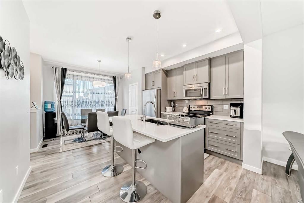 PRESENTING this stunning 2-storey semi-detached full duplex home that shows like brand new. Featuring an oversized single attached garage and a fully finished walkout basement with elegant finishing, this property offers over 2,038 sq. ft. of total developed living space. As you step inside, you’re welcomed by quality vinyl plank flooring that carries through the open-concept main level. This floor includes a spacious front entry, living room, half bath, dining area, and a beautifully designed kitchen that opens onto a large pressure-treated deck with SmartPly support columns and 42" aluminum railing, all overlooking the fully landscaped backyard. The kitchen is a true centerpiece, showcasing a HANSTONE QUARTZ island with an Allan Forest Blanco undermount sink that seats three. Crisp fossil-colored cabinetry—complete with 36" upper cabinets and abundant pot drawers—pairs perfectly with the Feng Shui 3x6 brick-lay backsplash with Brushed Satin Metal Schluter. Stainless steel appliances, undermount lighting, and a separate pantry complete this chef-ready space. Upstairs, you’ll find a large primary bedroom with a walk-in closet and a private ensuite featuring an oversized double shower with Euro tile. This level also includes upper-level laundry, two additional bedrooms, a linen closet, and another full bathroom with Euro tile and a generously sized vanity. Custom blinds are installed throughout the home. The fully finished walkout basement is ready for weekend entertaining, offering a family/rec room, a large utility room with a high-efficiency furnace, a storage area, and a well-sized 4-piece bathroom (with rough-in plumbing). Step directly into the fully landscaped backyard, complete with a shed and patio. Just steps from the canals and walking paths, this home has been exceptionally maintained inside and out. Become part of the sought-after Bayside community, with quick access to schools, parks, shopping, commute routes, and more. This home is the perfect starter property for you and your family.