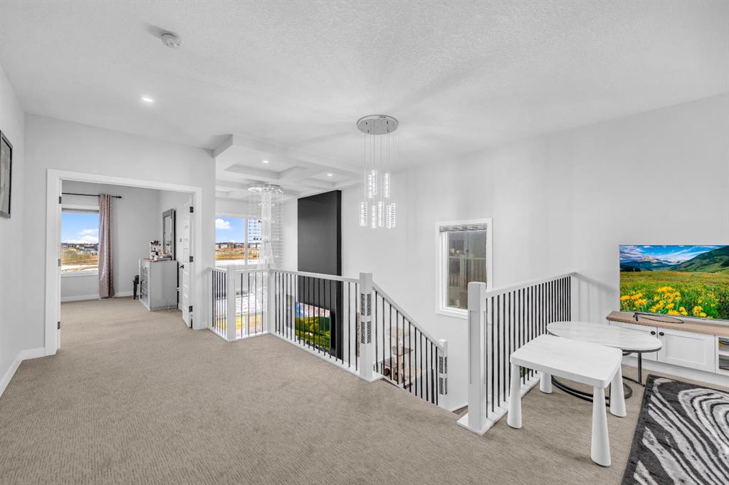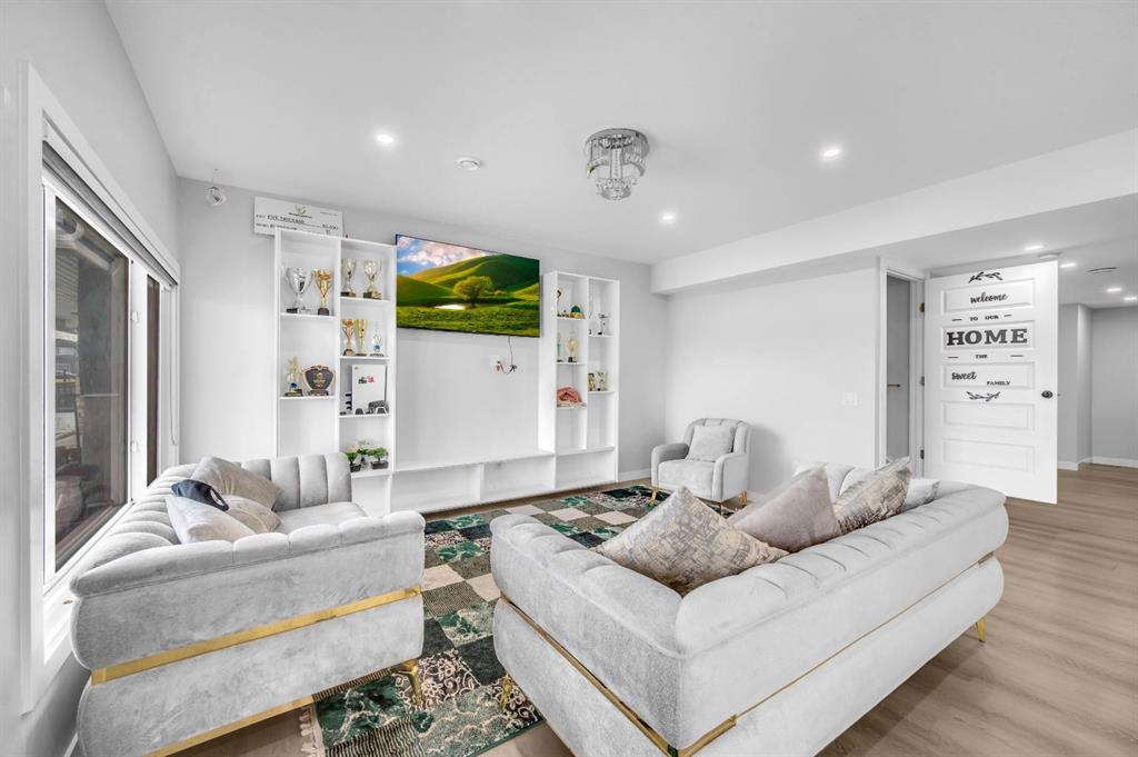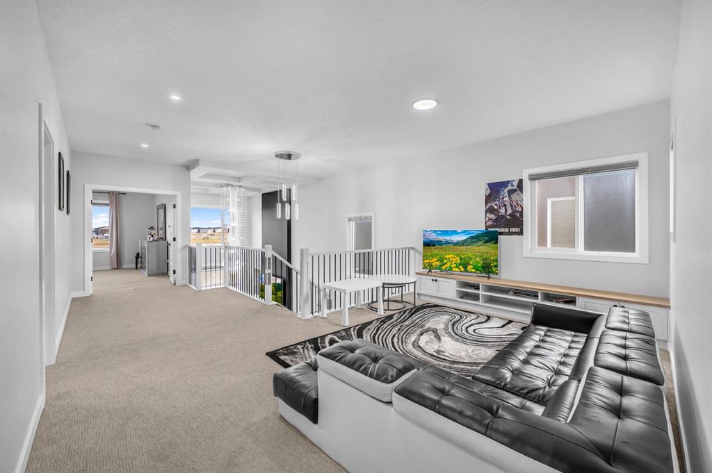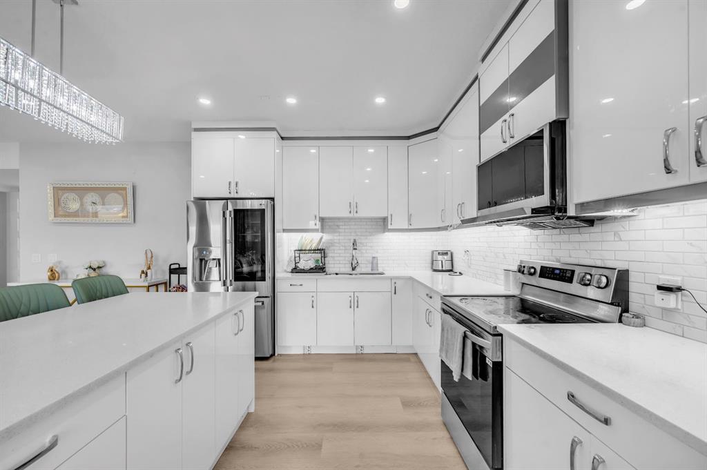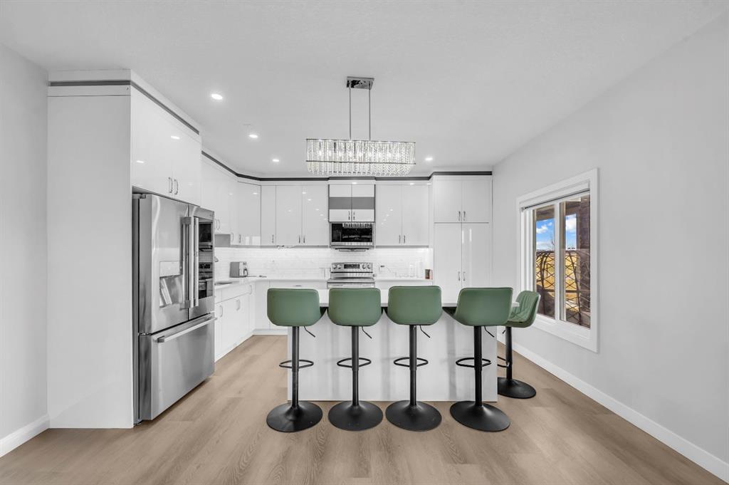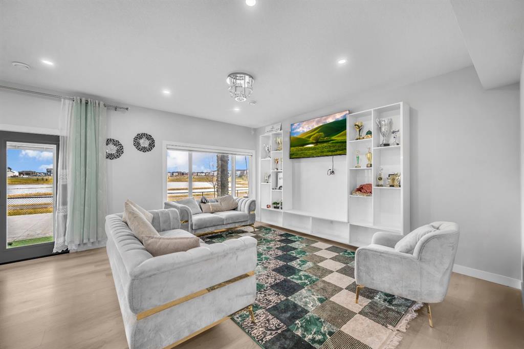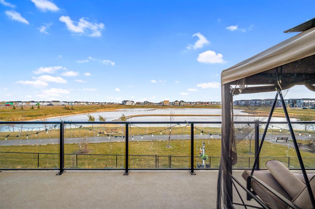 Discover an unparalleled level of luxury in this extraordinary two-storey with a walk-out basement, perfectly positioned to capture serene, panoramic views of the pond. Boasting over 3,100 sq. ft. of refined living space and a triple car garage, this residence blends architectural sophistication with premium comfort. The main level exudes elegance from the moment you step inside. Towering ceilings, expansive windows, and an abundance of natural light set the tone for elevated living. A versatile main floor bedroom or executive office is paired with a full bathroom, offering exceptional convenience for guests. The gourmet kitchen is a true showpiece, featuring striking two-tone custom cabinetry, a generous island, built-in premium appliances, and a fully outfitted spice kitchen for seamless entertaining. The dining area flows effortlessly into the grand family room, where a stunning open-to-above design and a contemporary fireplace create an ambiance of warmth and sophistication. From here, step onto the full-width elevated deck, the perfect vantage point to enjoy the views year round. The upper level continues to impress with four beautifully appointed bedrooms, including two opulent primary suites. The main primary retreat offers a spa-inspired ensuite complete with luxurious finishes and an expansive walk-in closet. A spacious and airy loft overlooks the living room below, providing a versatile lounge or relaxation space. The walk-out basement (Illegal) opens directly to the picturesque pond, offering a rare and private natural backdrop ideal for creating a future entertainment haven or personal sanctuary. A masterfully crafted home that embodies elegance, functionality, and an exclusive waterfront lifestyle. Indulge in the luxury you deserve book your private showing today.