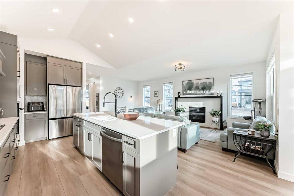 Welcome to this exceptional bungalow-style home in the picturesque community of Harmony—where modern luxury meets natural beauty. Perfectly positioned on a generous corner lot, this residence offers an elevated lifestyle that truly lives up to its name. From the moment you arrive, the home's striking curb appeal and thoughtful design stand out. The insulated, heated, detached triple-car garage is a dream—complete with epoxy flooring and upgraded lighting—providing secure, spacious parking and storage. Inside, the bright, vaulted, open-concept layout is ideal for contemporary living. The home features three well-sized bedrooms, including an impressive primary retreat. This serene sanctuary showcases a spa-inspired ensuite with dual sinks, a free-standing tub, and a large tiled shower. At the heart of the home is a chef-inspired kitchen designed to impress. Highlights include a massive centre island, gas cooktop, upgraded cabinetry, built-in garbage/recycling pull-out, and a fridge with a self-filling water dispenser. The open layout encourages both connection and effortless entertaining. The expansive living room is bright and has a cozy fireplace. A main-floor den adds versatility, making it perfect for a home office or quiet reading space. The dining area is large which is perfect for when you want to entertain. The fully finished basement features 9' ceilings, two additional bedrooms, and a spacious family/games area—ideal for movie nights, relaxation, or hosting guests. Need RV parking? This corner lot provides the option to store an RV or extra recreational toys with ease. Additional upgrades include a large deck spanning the entire back of the home, automated blinds, two phantom screen doors (front and back), a new ceiling fan, and included washer and dryer. Harmony is more than a community—it's a lifestyle. Enjoy the lake, golf club, scenic walking and biking paths all while being close to essential amenities. Situated just steps from Mickelson National Golf Club, LaunchPad, and access to the 2 Harmony Lakes. You'll experience a perfect blend of tranquility, recreation, and convenience. Don't miss your opportunity to call this remarkable property home. Contact us today to schedule your private viewing and start your next chapter in Harmony