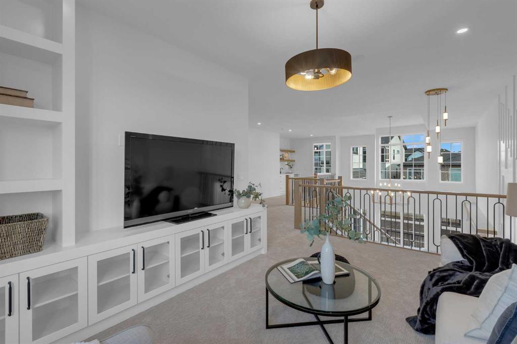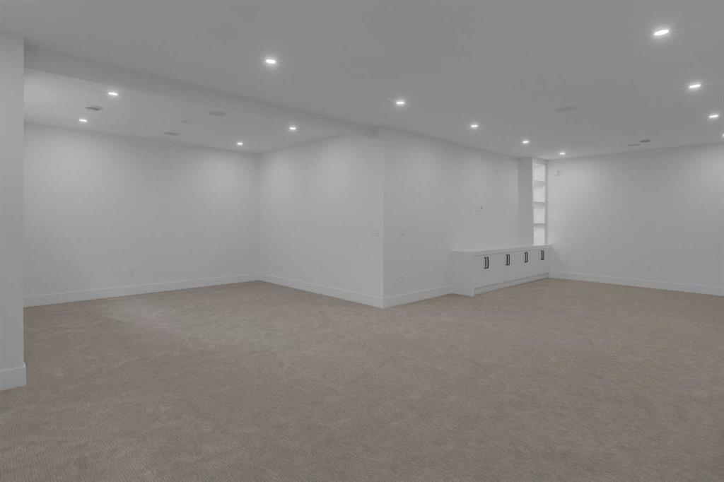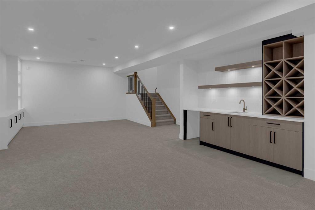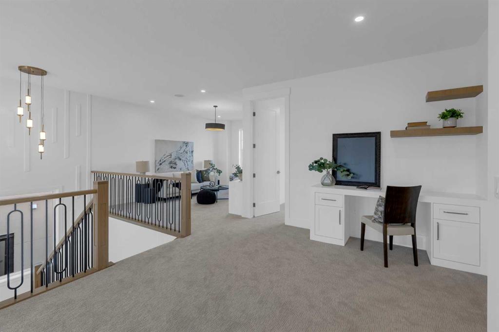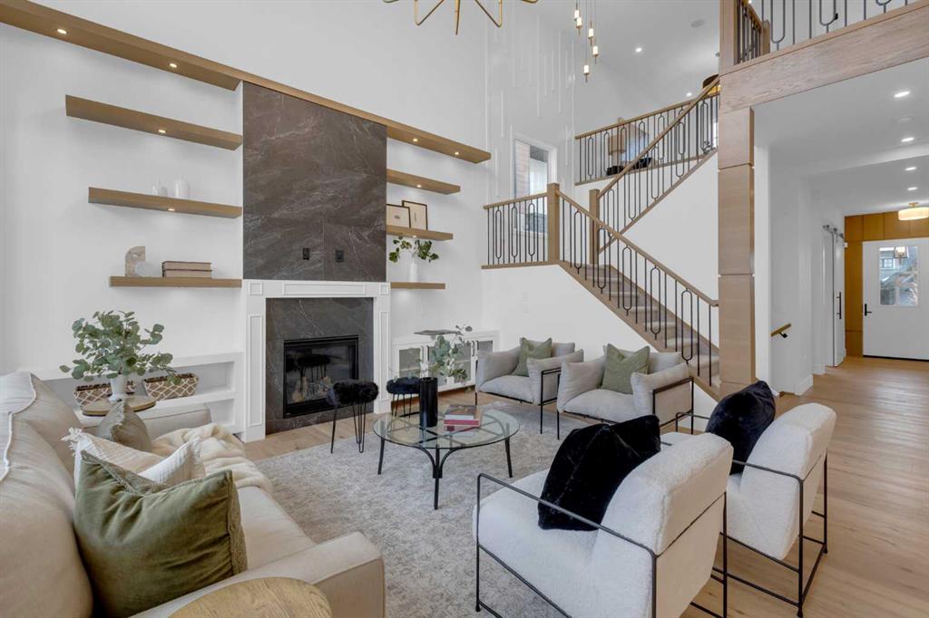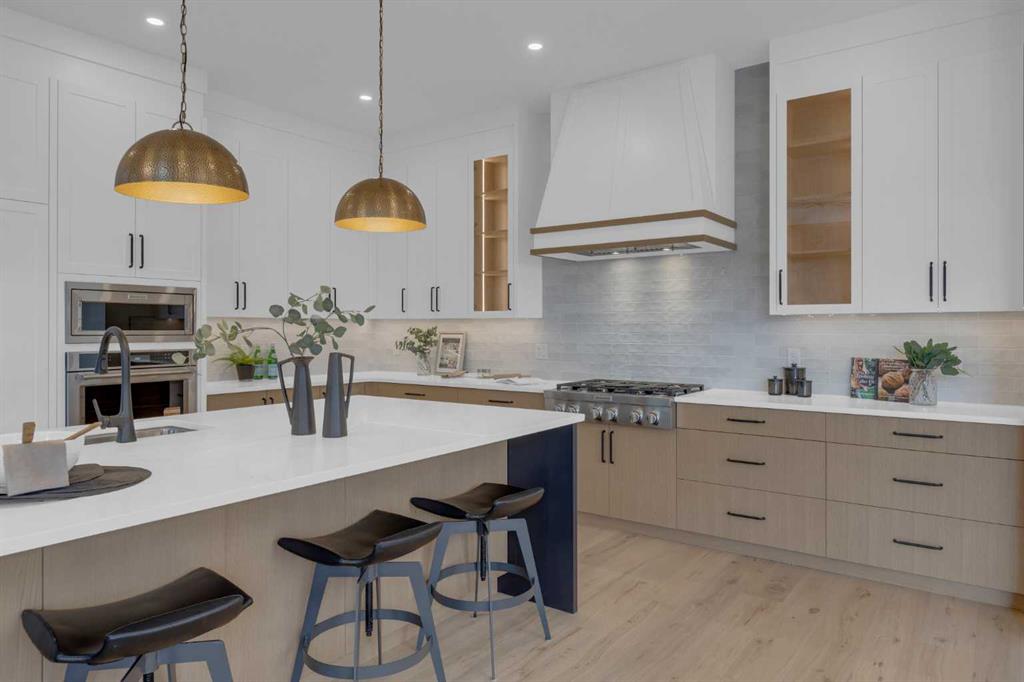 Welcome to this stunning home located in the highly sought-after community of Coopers Crossing! Boasting excellent curb appeal and backing onto a beautiful green space, this home is ideally situated close to schools, shopping, and major roadways. The main floor features 10' ceilings and engineered hardwood throughout, creating a bright and upscale feel. You will find a private front office, a spacious family room with built-in shelving, a cozy fireplace, and an impressive open-to-above design. An elegant dining area that opens onto a large deck with a BBQ gas line—perfect for entertaining. The chef’s kitchen is truly a dream, offering built-in appliances, a large island, quartz countertops, and plenty of cabinetry. A convenient mudroom off the garage and a stylish powder room complete this level. Upstairs, you are welcomed by a spacious bonus room, two secondary bedrooms with built-in shelving, a shared bathroom, and a thoughtfully located upstairs laundry room. A standout feature of this home is the built-in desk space and wet coffee bar in the common area on the second floor—a rare and highly desirable find that adds both character and convenience. The luxurious primary suite showcases a tray ceiling, a spa-inspired ensuite with dual vanities, a standalone tub, a steam shower, and a generous walk-in closet. The fully finished basement provides even more living space, featuring a wet bar, a large recreation room, and an additional flex area that is perfect for a fitness space or games area. You will also find a large bedroom and a full bathroom. Elegant lighting, beautiful woodwork, and large windows throughout the home create a warm, inviting atmosphere and flood the space with natural light. There are also plenty of closets and storage spaces thoughtfully placed throughout the house for added convenience. The oversized triple tandem garage is insulated, finished to paint grade with textured ceiling, and features high ceilings designed to accommodate a car lift, offering plenty of room for vehicles and storage. This remarkable home is truly a must-see!