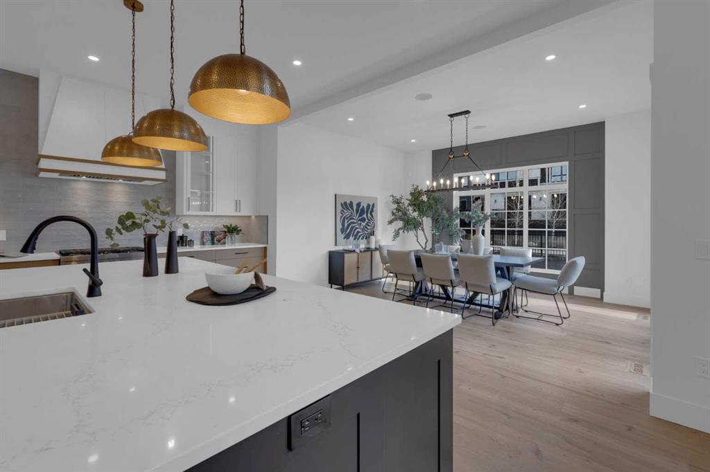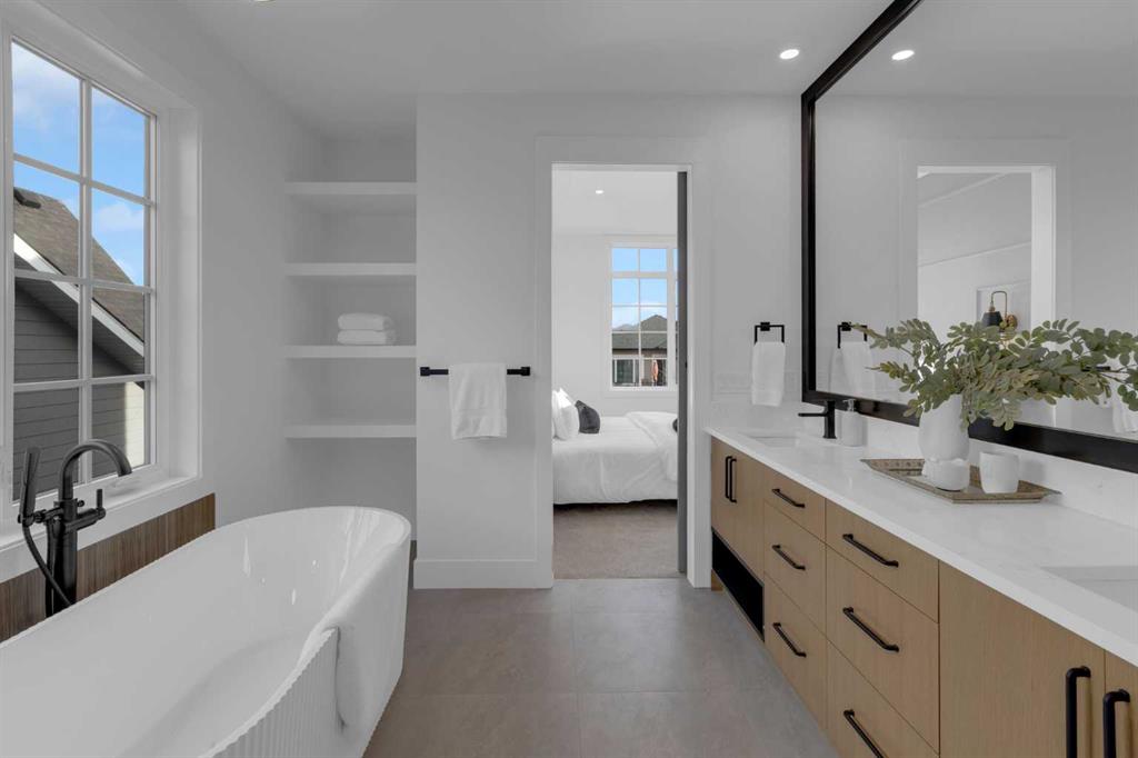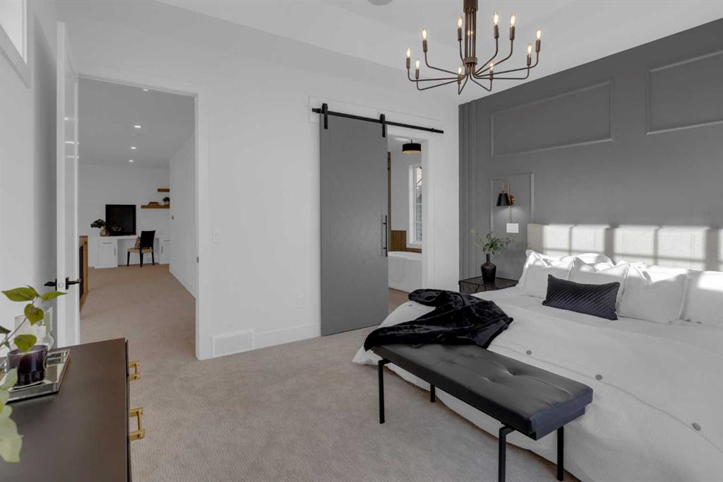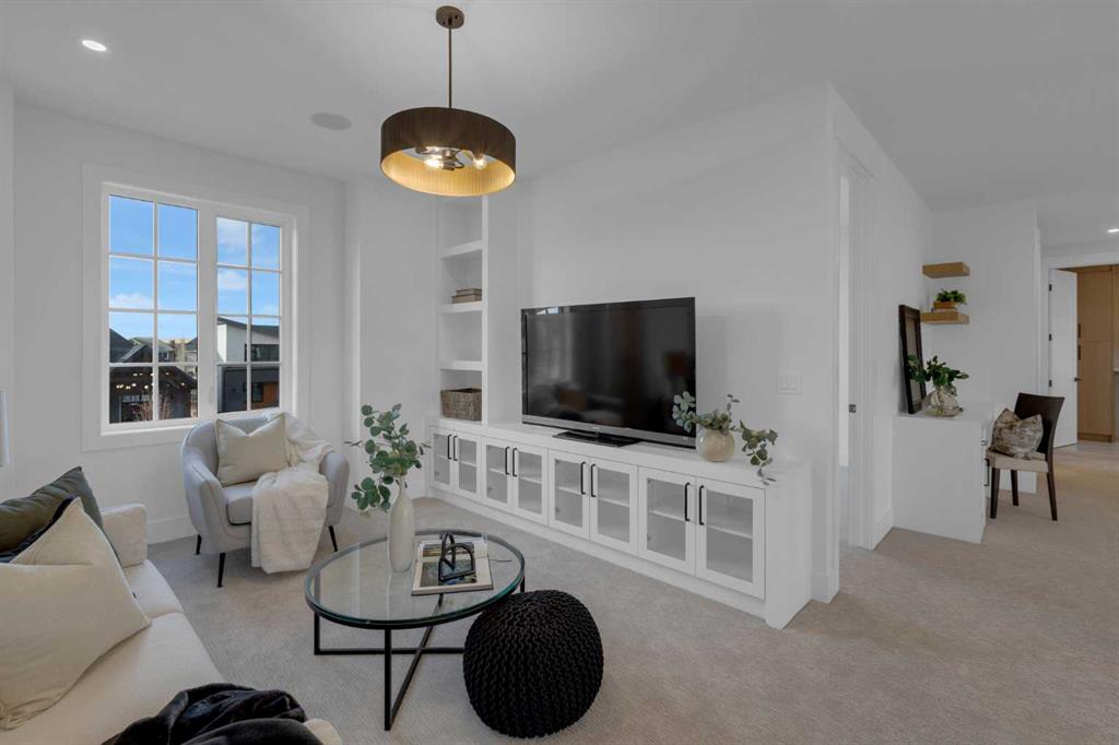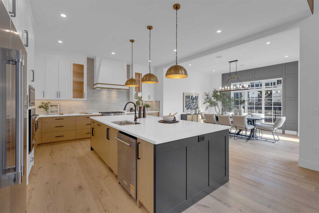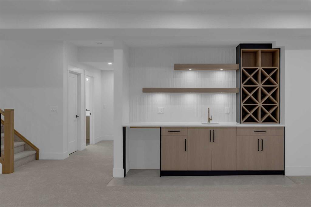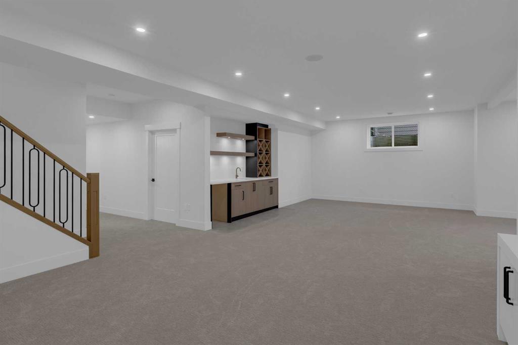 Welcome to this stunning home located in the highly sought-after community of Coopers Crossing! Boasting excellent curb appeal and backing onto a beautiful green space, this home is ideally situated close to schools, shopping, and major roadways. The main floor features 10' ceilings and engineered hardwood throughout, creating a bright and upscale feel. You will find a private front office, a spacious family room with built-in shelving, a cozy fireplace, and an impressive open-to-above design. An elegant dining area that opens onto a large deck with a BBQ gas line—perfect for entertaining. The chef’s kitchen is truly a dream, offering built-in appliances, a large island, quartz countertops, and plenty of cabinetry. A convenient mudroom off the garage and a stylish powder room complete this level. Upstairs, you are welcomed by a spacious bonus room, two secondary bedrooms with built-in shelving, a shared bathroom, and a thoughtfully located upstairs laundry room. A standout feature of this home is the built-in desk space and wet coffee bar in the common area on the second floor—a rare and highly desirable find that adds both character and convenience. The luxurious primary suite showcases a tray ceiling, a spa-inspired ensuite with dual vanities, a standalone tub, a steam shower, and a generous walk-in closet. The fully finished basement provides even more living space, featuring a wet bar, a large recreation room, and an additional flex area that is perfect for a fitness space or games area. You will also find a large bedroom and a full bathroom. Elegant lighting, beautiful woodwork, and large windows throughout the home create a warm, inviting atmosphere and flood the space with natural light. There are also plenty of closets and storage spaces thoughtfully placed throughout the house for added convenience. The oversized triple tandem garage is insulated, finished to paint grade with textured ceiling, and features high ceilings designed to accommodate a car lift, offering plenty of room for vehicles and storage. This remarkable home is truly a must-see!