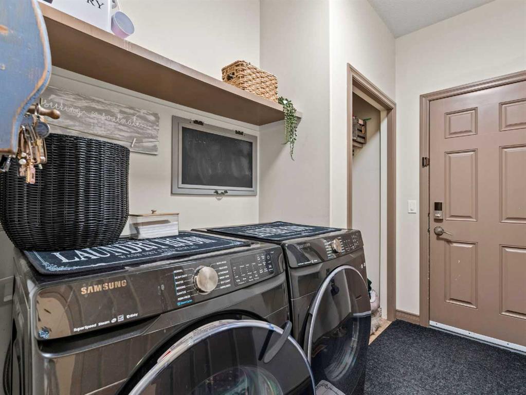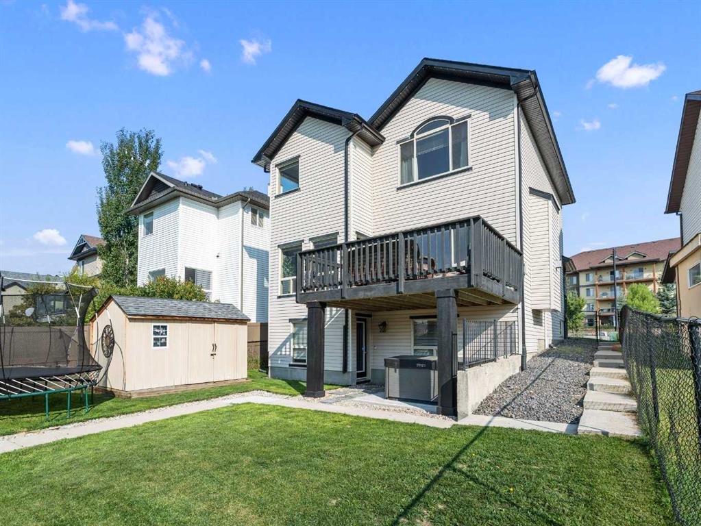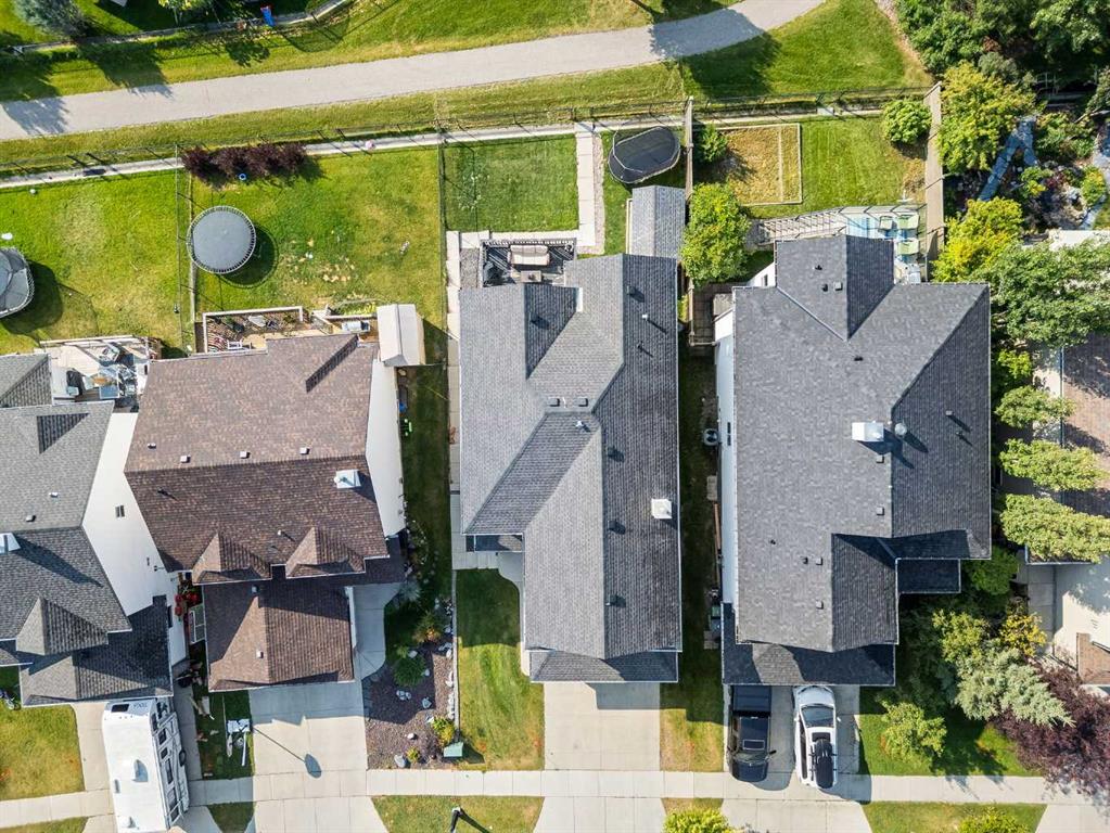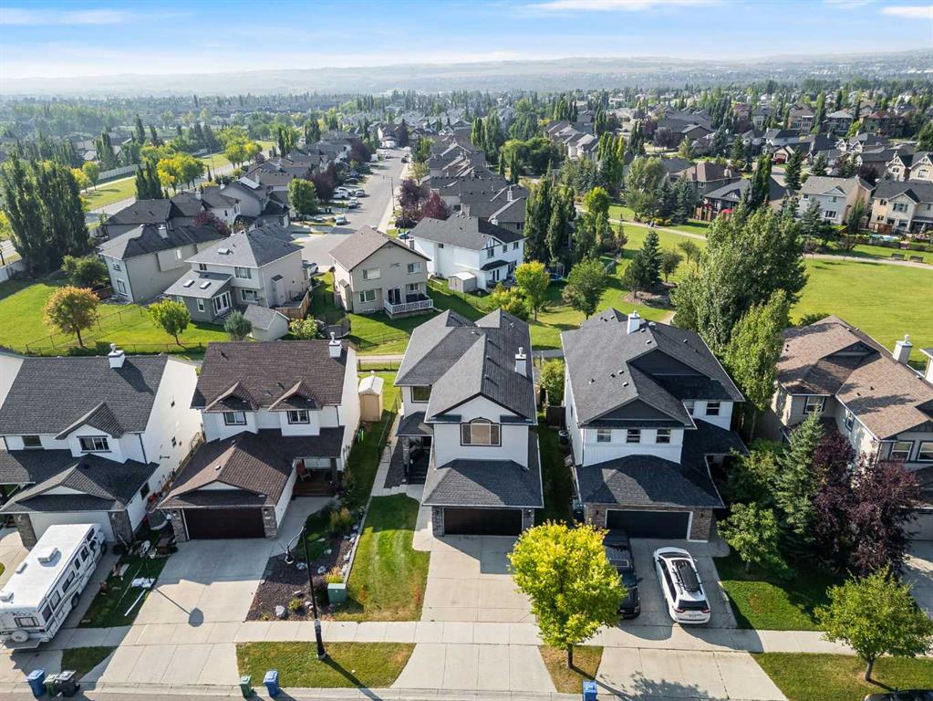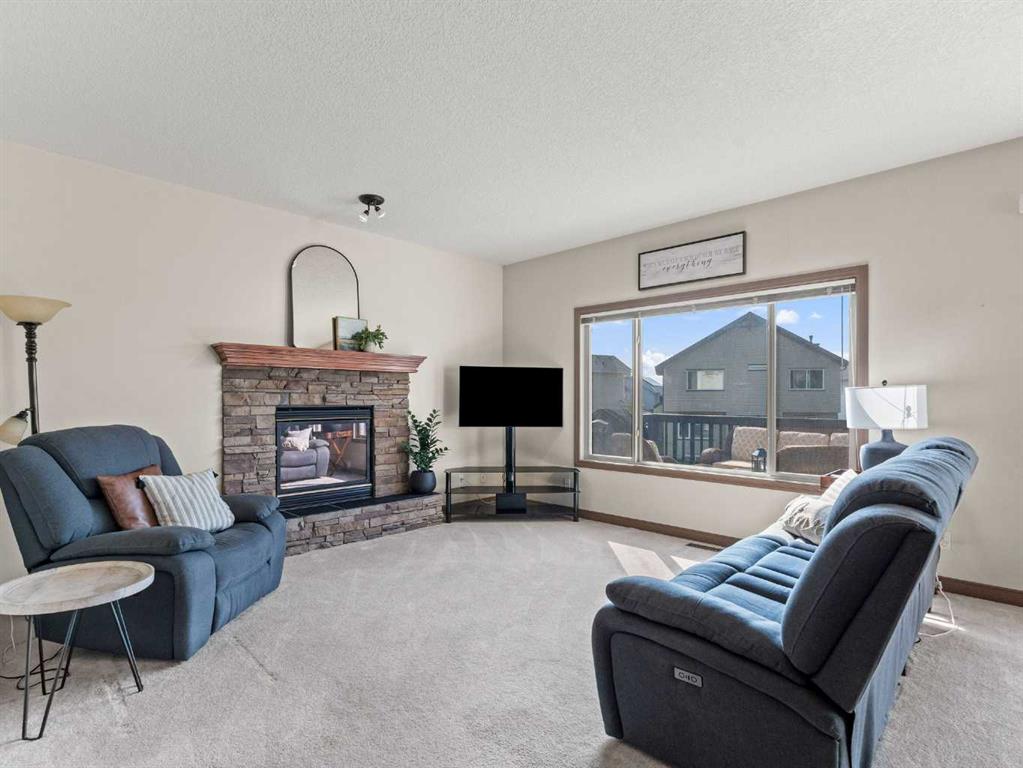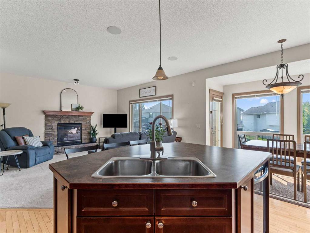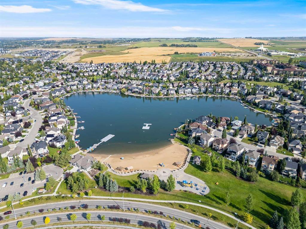 Welcome to this fully finished walkout 2-storey offering over 3,000 sq ft of living space designed for both comfort and lifestyle. Complete with air conditioning, a large garage, and a setting that backs onto greenspace and walking paths with mountain views and a park nearby, this home truly has it all. You’ll also enjoy exclusive lake access with year-round activities—swimming, fishing, paddle boarding, volleyball, basketball, and barbecues in the summer, plus skating in the winter. Add in a great school district and quick access to Calgary, just 15 minutes to South Calgary, and the location checks every box. Inside, you’re greeted by a grand entrance, where the main floor features 9-ft ceilings and hardwood flooring. A front office makes working from home easy, while the open living area offers a gas fireplace and large windows for natural light. The kitchen showcases a big island, dark stainless appliances, and flows to the dining area with access to a back deck where you can enjoy the greenbelt behind you. Upstairs you’ll find a vaulted bonus room and three bedrooms, including a large primary suite with mountain views, a walk-in closet, and a spa-inspired ensuite with a jetted tub, walk-in shower, and dual sinks. The fully developed basement adds even more living space with a big bedroom, full bathroom with shower, a wet bar with cabinets, and a large open rec space that walks out to the backyard. This home blends lifestyle, location, and family-friendly features in one complete package. Call your favourite Realtor to book your private showing—homes like this don’t last long!