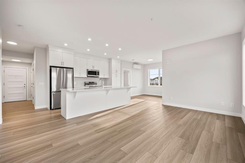 Discover luxury condo living in one of Calgary’s most desirable southwest communities. This brand-new 2-bed plus den corner unit at The Whitney offers 1,066.60 sq.ft. of bright, open-concept living with a rare southwest exposure overlooking a peaceful protected green reserve. Enjoy natural light throughout the day, complete privacy, and a premium location just steps from scenic walking paths. Designed with upgraded finishes, this home features luxury vinyl plank flooring, upgraded kitchen details, stainless steel appliances, a spacious island, and a built-in air-conditioning unit. The functional layout includes two well-sized bedrooms, a full den ideal for a home office, two modern bathrooms, and a private balcony facing the treeline. Parking is convenient with a titled underground heated stall plus an additional storage locker. Built by Cove Properties—one of Calgary’s most respected multifamily builders known for exceptional craftsmanship. This unit is located in the prestigious Springbank Hill neighbourhood. You’re a short walk to Aspen Landing and just a 10-minute drive to downtown. A limited opportunity to own a luxury corner unit in a premium southwest community. Book your viewing today.