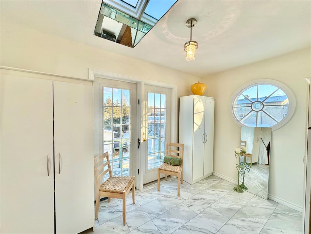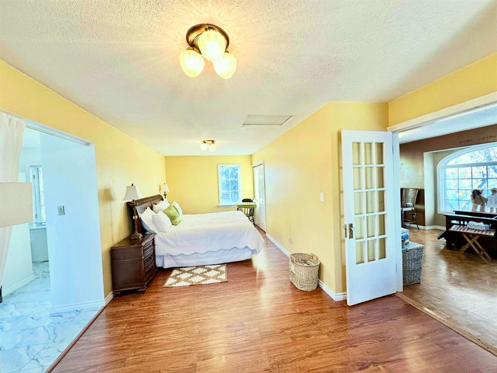 If you’ve driven down Churchill Drive, this striking Mansard-style home has surely caught your eye. Now is your chance to see inside! Welcome to 10123 Churchill Drive, perfectly situated across from Lac La Biche Lake and just a 5-minute walk to downtown. From your front door, enjoy ever-changing waterfront views, stroll the shoreline, or follow scenic trails to McArthur Place Park and Nashim Drive, where sunsets and birdlife await. Inside, you’ll find a home that blends mid-century charm with modern updates. Built in 1956 and lovingly maintained, it showcases character windows — bay, arched, circular, and oval — that flood the space with natural light. Elegant white walls, French doors, arched openings, granite countertops, and stylish fixtures create a timeless yet contemporary feel. The redesigned galley kitchen features new appliances, abundant cabinetry, granite counters, and a pantry, while the dining room opens directly to the deck through glass patio doors. Flowing into the living room through a wide arched wall, this space is ideal for entertaining with lake views as your backdrop. A cozy study with glass doors offers flexibility for work or relaxation. The main floor also includes a 4-piece bath and clever storage solutions. Upstairs, a spacious family room with a picture window overlooks the lake, joined by a large primary bedroom, bathroom, and a sunroom with balcony access to the backyard. The fully renovated basement adds even more living space with a sitting room, two bedrooms, laundry, mechanical room, and plumbing ready for a third bathroom. Outdoors, the fenced yard is designed for enjoyment with arbore, pergola, firepit, gardens, raised rose bed, and a walkway to the workshop (formerly a garage, easily converted back). A wrap-around deck and new front veranda complete this inviting property. This home is truly a joy to experience — a must-see for anyone seeking character, comfort, and lakefront living!