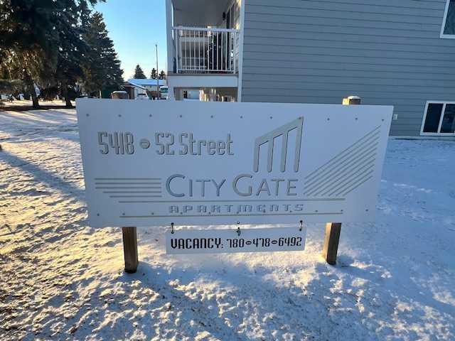 This is a fantastic opportunity to acquire either an investment property or a cozy home of your own. Located just minutes from downtown Camrose, Alberta, this property is ideally situated near shopping, the University of Alberta, scenic walking trails, and the Camrose Golf Course. The building itself is secure and has recently undergone exterior updates, with all decks being refinished. This 2-bedroom condo offers a spacious, north-facing living room with a private deck and a galley kitchen. It also features a four-piece bathroom, a convenient storage room, and ample closet space. The surrounding grounds provide a tranquil, park-like atmosphere with mature trees.