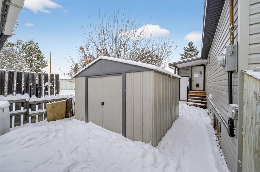 Perfect starter home or affordable investment property! This owned lot is ideal for anyone seeking a low mortgage—or even no mortgage—lifestyle. Tucked away in a quiet cul-de-sac and backing onto peaceful green space, with convenient back-alley access, this charming home offers 3 bedrooms and 1 bathroom. A spacious addition provides a cozy family room, while recent updates include a newer washer and dryer, a recently serviced furnace, a new thermostat, fresh flooring and paint, a newly installed pot light, and a new roof in 2023. The backyard offers lovely outdoor space complete with lilac trees, peonies, an apple tree, and a healthy patch of rhubarb, along with a fire pit for evening relaxation. A heated and insulated double detached garage makes the perfect space for hunters, hobbyists, or car enthusiasts. Outside, you’ll also find ample storage, including dedicated cold storage—ideal for preserving produce or seasonal items. Move-in ready and full of value!