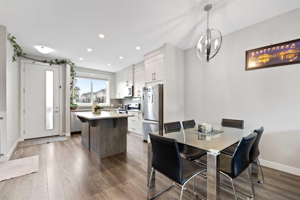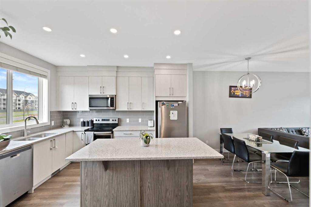 Welcome to this rare and beautifully upgraded 2-storey townhouse in the highly sought-after and fast-growing community of Redstone, NE Calgary. One of the most unique units in the entire complex, this home offers unmatched privacy with no neighbors in front or behind, allowing for open views, abundant natural light, and a peaceful living environment. Facing north, the home enjoys soft, balanced daylight and stays cooler in the summer, while the sunny backyard is perfect for relaxing or entertaining. With over 1,700 sq. ft. of total developed space, the thoughtful floor plan features 3 bedrooms, 3.5 bathrooms, and multiple living zones across three finished levels. The main floor greets you with a bright, open-concept layout. The upgraded kitchen boasts quartz countertops, full-height white cabinetry with sleek bar pulls, a stylish teardrop backsplash, and stainless steel appliances. A large window above the sink and recessed lighting keep the space warm and inviting. The dining area accommodates gatherings with ease, while the living room—framed by unobstructed views—offers a comfortable spot to relax or entertain. Upstairs, the rare dual-primary suite layout sets this home apart. Each spacious bedroom features its own ensuite bath and large walk-in closet—ideal for multi-generational families, roommates, or guests. The professionally finished basement adds a third bedroom, full bath, and a generous recreation area perfect for a home office, gym, or media room. Notable extras include durable Hardie Board siding, a dedicated parking stall, and a backyard with no rear neighbors, enhancing privacy and outdoor enjoyment. In Redstone, you’ll enjoy well-maintained green spaces, scenic walking trails, modern playgrounds, and close proximity to grocery stores, medical clinics, public transit, and dining. With quick access to Stoney Trail, commuting is a breeze.This home combines the comfort of single-family living with the convenience of a low-maintenance townhouse—truly a rare find.