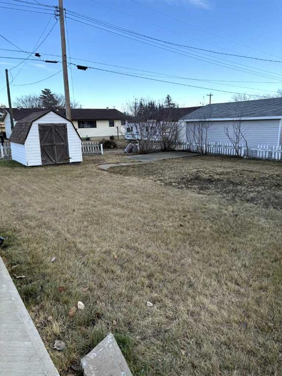 Welcome to our beautiful town of Consort, we present this 1950"s storey and a half home comes with 993 sq ft and has been fixed up with new flooring, new fixtures, interior paint and new laminate counter tops. There are three bedrooms and one bathroom on the main floor, along with the cozy kitchen with an eating area and a nice size living room. On the upper level is more space that used to be used as a bedroom and sitting area. The rear porch has the washer and dryer in it. In the partial basement is the furnace(15 years old) and hot water tank(11 years old) along with some shelves for storage. Outside on this 9200 sq ft lot is the detached double garage with two doors, an 8x12 shed that holds all the lawn maintenance equipment and a large spot for the garden. There has been new sidewalks poured in the past, the roof on one half(S) is 5 years old and the other half(N) is new. Vinyl siding is all around the house with a few windows that have been replaced. Out front towards the road are a few large trees that tower over the house and a fence.