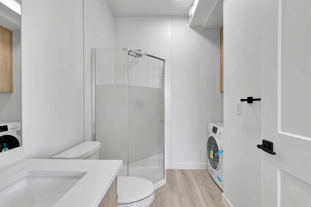Welcome to 1820 Home Road NW, a stunning corner unit offering over 2,000 sq. ft. of versatile living space. With its prime corner positioning, this residence benefits from enhanced privacy and extra windows that fill the home with natural light. A standout feature of this property is the adaptable ground-level LEGAL suite, equipped with a private 3-piece bathroom. This dynamic space is designed to suit your lifestyle needs: utilize it as a professional setting for a Home-Based Occupation (subject to City of Calgary permitted uses), a secluded guest retreat, or leverage it for income generation through long-term or short-term rentals. Moving up to the main level, the open-concept design is perfect for entertaining. It features durable vinyl plank flooring, a convenient 2-piece powder room, and a chef-inspired kitchen with floor-to-ceiling cabinetry, quartz countertops, stainless steel appliances, and island bar seating. Step out onto the deck to enjoy your morning coffee in the sun. The upper level is thoughtfully laid out with a rare dual-primary design. You will find two generously sized bedrooms, each boasting its own private 4-piece ensuite bathroom—providing the ultimate setup for roommates, family, or guests. Located in the heart of Montgomery, just steps from the Bow River and Shouldice Park, and offering quick access to Stoney Trail and the Trans-Canada Highway, this home combines massive square footage, income potential, and modern luxury. Project completed in 2025.