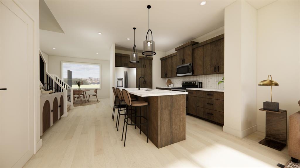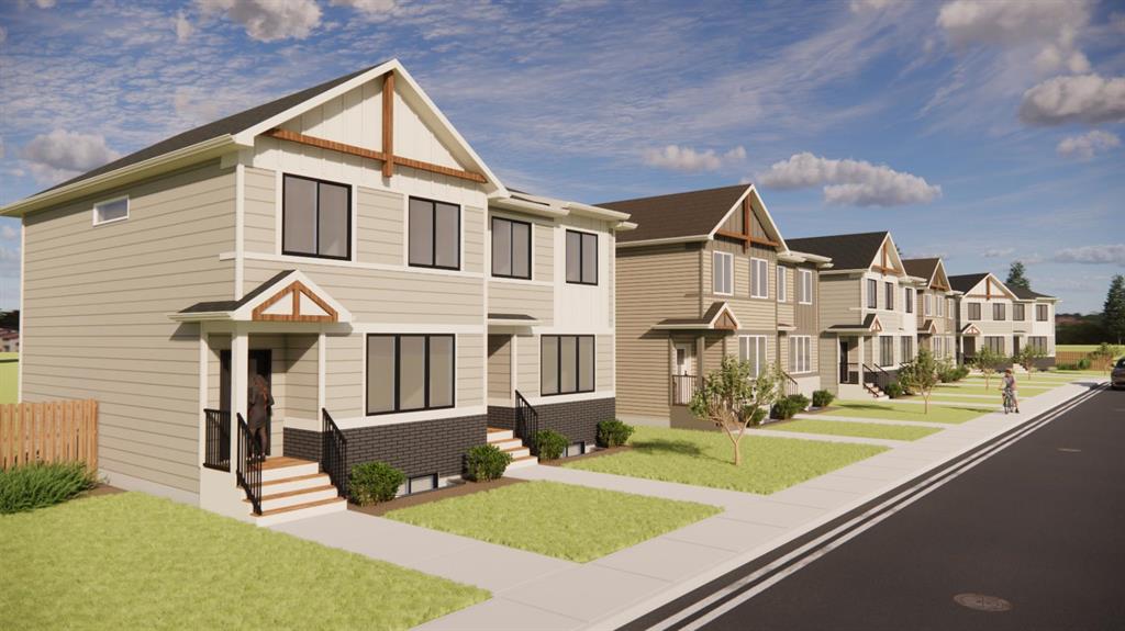 Welcome to the FIRST of EIGHT new half-duplex units to be built in the wonderful new community of Malloy Landing in the town of Coaldale! This terrific Edderton model is one of the most popular two storey layouts built by Stranville Living Master Builder and for good reason. This thoughtful main floor design incorporates a large welcoming living room and an ample dining room separated by Stranville Living's beautifully appointed kitchen that includes cabinetry by Adora Cabinets, a fully tiled backsplash, and quartz countertops for both the base cabinets and island with extended eating bar. On the upper level, you'll find all three bedrooms, both a primary ensuite and main bathroom, and laundry room set up for a stacking unit beside several shelves for storage. These terrific new duplexes are now under construction and will be ready for occupancy in the spring of 2026. Malloy Landing is the future of residential living in Coaldale and the Shift Rec Center and new high school are just the beginning of many compliments coming to this amazing new development! There's nothing like NEW! Photos are renderings but are a reasonable depiction of actual finishes selected by the builder's design team. Two exterior options and two interior options are available. Cobblestone exterior and interior package "A" shown here.