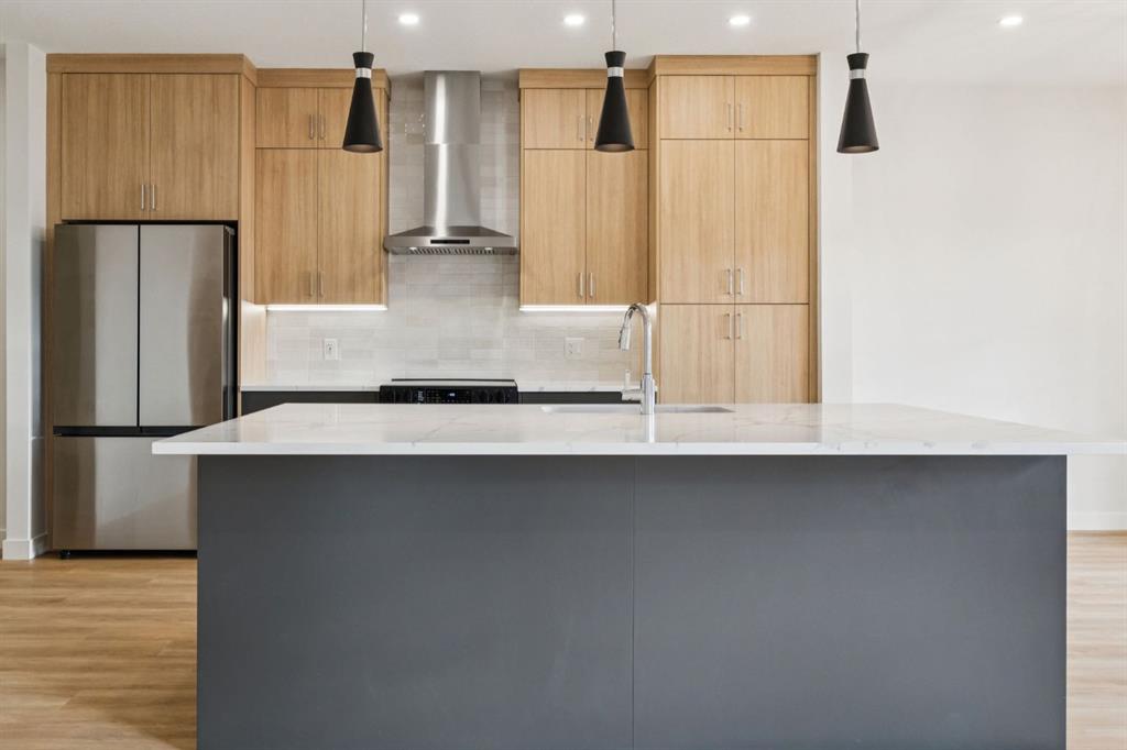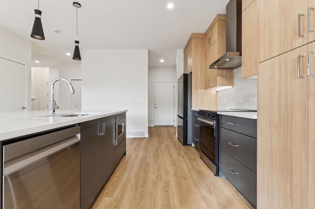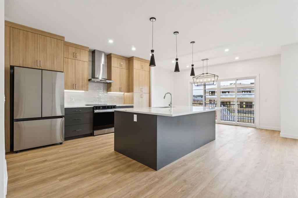 Welcome to 1140 Harmony Heath—where luxury meets lifestyle in the award-winning community of Harmony. Boasting over 2,690 square feet of total living space, this meticulously finished home is perfectly positioned 15 minutes west of Calgary and 45 minutes from the mountains. The chef-inspired kitchen serves as the heart of the home, featuring full-height dual-tone cabinetry (Dark Grey/Oak), premium Samsung appliances with a gas line, and a seamless flow into the sun-drenched living room. Functional elegance shines in the walk-through mudroom with custom lockers and pantry shelving, leading to a double attached garage and an expansive 37' driveway. Upstairs, the primary sanctuary offers serene greenspace views, a freestanding soak tub, and a 10mm glass shower. The fully developed basement with 9' ceilings is an entertainer’s dream, featuring a massive recreation room and a private fourth bedroom perfectly tucked away for guests or a home office. Step outside to a 16’x8’ covered deck and a fully sodded, fenced yard that opens to developer-installed wrought iron fencing and lush greenspace. Enjoy world-class amenities, including two lakes, 27km of pathways, an adventure park, and top-rated schools with bus pick-up. Your move-in-ready adventure starts here.