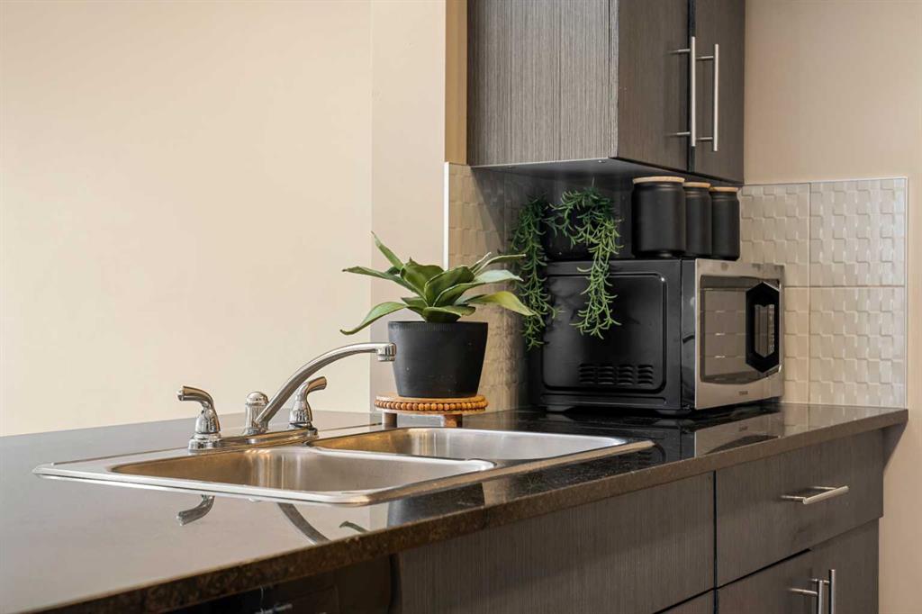 Are you looking for a smart investment or a place to call your own at an attractive price point with low condo fees? This could be the one. This fantastic condo delivers comfort, practicality, and real value with low condo fee’s. Situated on the TOP FLOOR , this MOVE-IN-READY unit offers a fabulous peaceful PARK/POND VIEW and a setting you’ll appreciate every day. This well-kept and spacious 2-bedroom, 1-bathroom condo is located in the family-friendly, amenity-filled community of Saddle Ridge. The location is hard to beat, with quick access to the Saddletown C-Train Station, the Genesis Centre, nearby restaurants, and an excellent proximity to a network of walking and biking paths. This bright top-floor unit spans nearly 700 sq. ft. and features an open-concept layout designed to make the most of the space. From the main living area, step onto the sun-filled south-facing balcony and take in relaxing views of the park and scenic pond — a great place to recharge or host guests. The kitchen flows seamlessly into the main living space and includes stone countertops, rich dark cabinetry, & generous counter space. The additional large counter makes it the perfect spot for everyday use, casual meals or hosting family and friends. The comfortable living room provides a peaceful place to relax after a long day. The dining area makes it easy to gather with family and friends for meals and special occasions. In-suite laundry adds everyday convenience and functionality. The primary bedroom offers plenty of room to unwind and includes a large closet, while the second bedroom is also nicely sized and features its own closet. A 4-piece bathroom completes the layout with stylish stone counters. Step outside to your balcony, ideal for BBQs, fresh air, and quiet moments outdoors. Other notable features include IMMEDIATE POSSESSION AVAILABILITY, low condo fees, and a conveniently located parking stall close to the main entrance. The elevator is also conveniently located close to your unit for easy access in and out. This home offers excellent value for first-time buyers, professionals, downsizers, or anyone looking for a reliable investment opportunity. Schedule your showing today and come see everything this property has waiting for you!