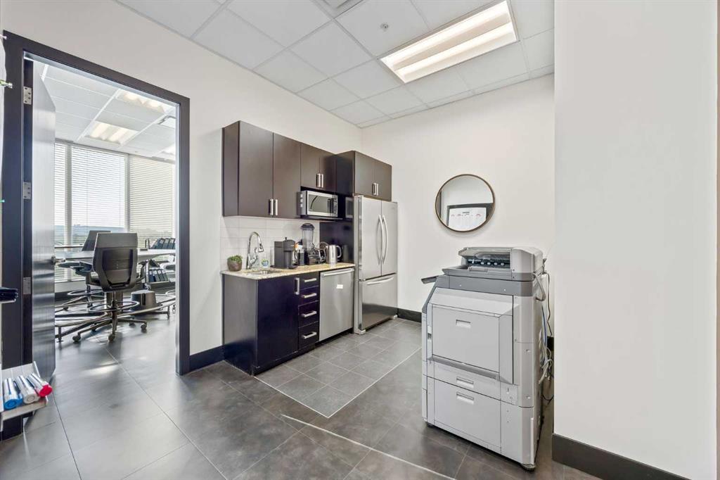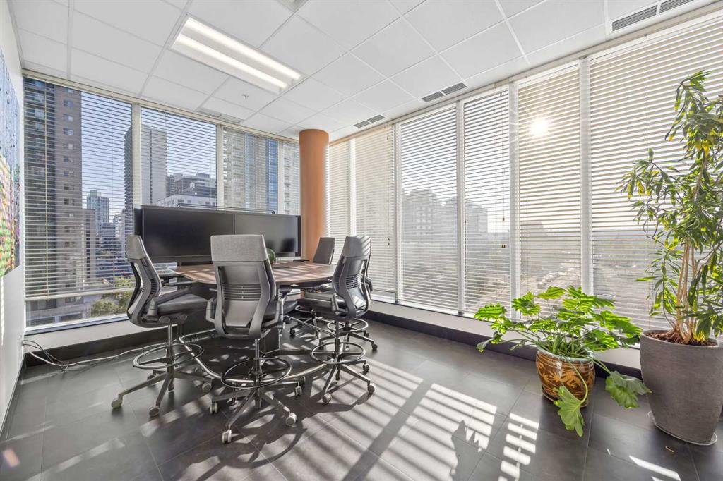 Stunning TURN KEY Downtown OFFICE CONDO with River Views!! Discover a rare opportunity to own a FULLY FURNISHED, MOVE IN READY office condo in the prestigious Solaire building in Calgary’s downtown West End. Featuring 4 private offices, a modern kitchen, reception area and 1 titled underground parking stall. Wow! This spacious suite is designed to impress clients and provide comfort for your team. Step inside to a high-end professional buildout highlighted by elegant tile flooring, sleek modern décor, soaring 10-foot ceilings, and floor-to-ceiling windows that flood the space with natural light while showcasing breathtaking river views. The kitchen is finished with espresso cabinetry, granite countertops, and stainless steel appliances, making them perfect for staff breaks or hosting meetings. This office is being sold fully furnished, complete with all workstations and chairs included—an ideal turn-key solution for businesses looking to transition seamlessly into a professional downtown space. The Solaire building offers unmatched amenities rarely found in office settings, including a concierge, on-site security, fitness facility, car wash bay, and bike storage. Its unbeatable location is just steps from the 8th Street C-Train station, the river pathways, and some of Calgary’s best dining and entertainment. Whether you’re a growing company or an investor seeking a versatile downtown property, this office condo checks all the boxes. Get ahead of the resurging downtown office market and take advantage of this amazing opportunity today!