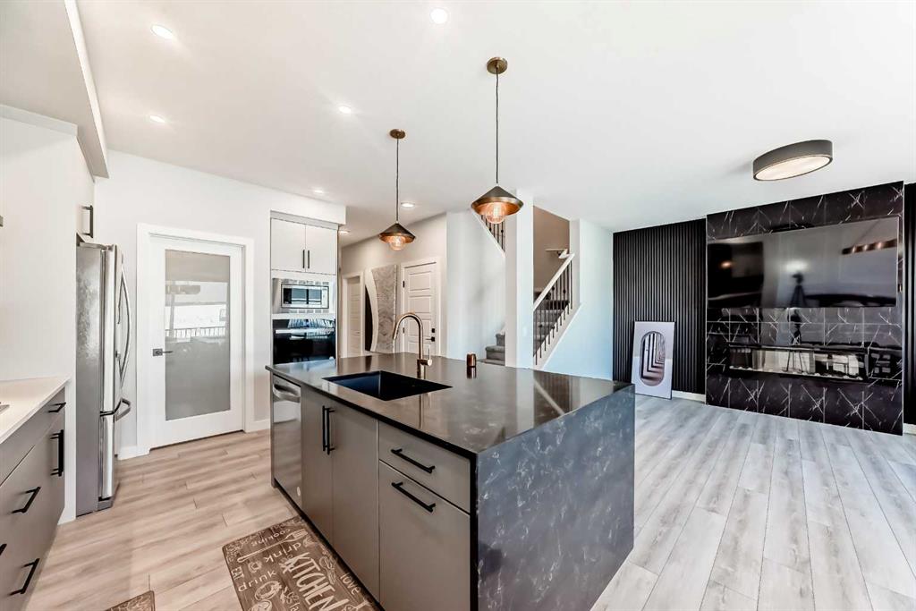 Check out this amazing 6-bedroom, 1-flex room, 4 full bathrooms two-storey home in Ambleton! With over 2330 sq. ft. of luxurious living space, it features a walkout legal basement suite (currently used for short-term rental), perfect for families or multi-gen living. Main floor highlights: Open-concept living area with fireplace, Modern gourmet kitchen with granite countertops, high-end appliances, built-in oven & microwave combination and range hood, Main floor bedroom and full bathroom and Oversize deck for summer BBQs. Upstairs: Large bonus room for media or play, Upstairs laundry, Master bedroom with 5-piece ensuite and walk-in closet, 3 additional spacious bedrooms. Walkout basement: Fully developed and registered as a legal secondary suite, 9 ft ceilings, 1 bedroom, flexroom/den, kitchen, and laundry.