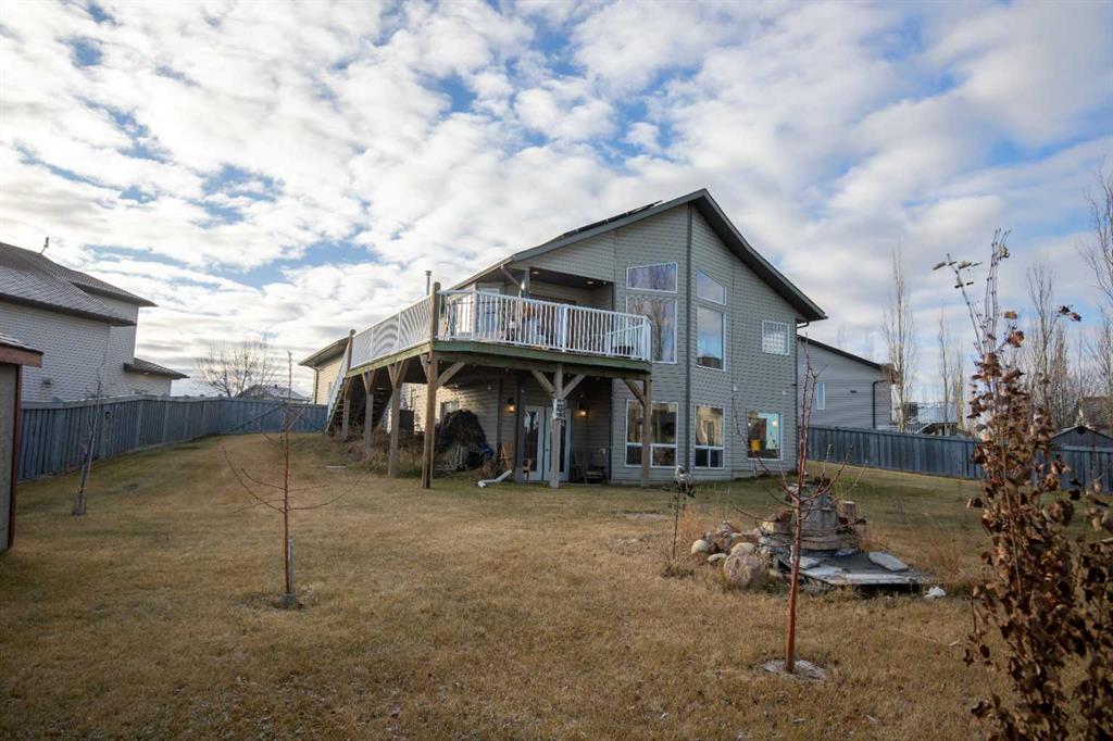 This stunning bungalow sits on a quiet corner of a cul-de-sac and offers an incredible mix of comfort, style, and thoughtful upgrades throughout. The welcoming sunken entry leads into a bright and open main floor featuring a spacious kitchen with an island, corner pantry, stainless appliances, and plenty of cupboard and counter space, flowing into a dining area with access to a raised deck (gas line included) overlooking the massive pie-shaped yard with beautiful views. The living room showcases floor-to-ceiling windows with custom blinds and a dual-sided gas fireplace shared with the primary suite, which also includes a walk-in closet and a relaxing 4-piece ensuite with a jetted tub. A main floor laundry room, additional bedroom, and full bathroom complete the level. The bright walkout basement is designed for entertaining with modern finishings, a full wet bar, pool table, speaker system, two large bedrooms, another well-finished bathroom, and a spotless utility room. The heated garage is a standout with ceiling storage, hot and cold taps, 220V power, laundry setup, and a dedicated indoor pet area with direct yard access. This home is loaded with upgrades including central A/C with humidifier, central vac, 2022 shingles, new fridge and microwave, a 2024 hot water tank, automatic irrigation with fertilizer pump, new apple and cherry trees plus grapevines, a new remote-controlled backyard waterfall feature, and most notably, a premium 24-panel solar system installed last month valued at $45,000, offering significant long-term savings. A rare find with incredible natural light and a huge lot, this bungalow truly checks every box.