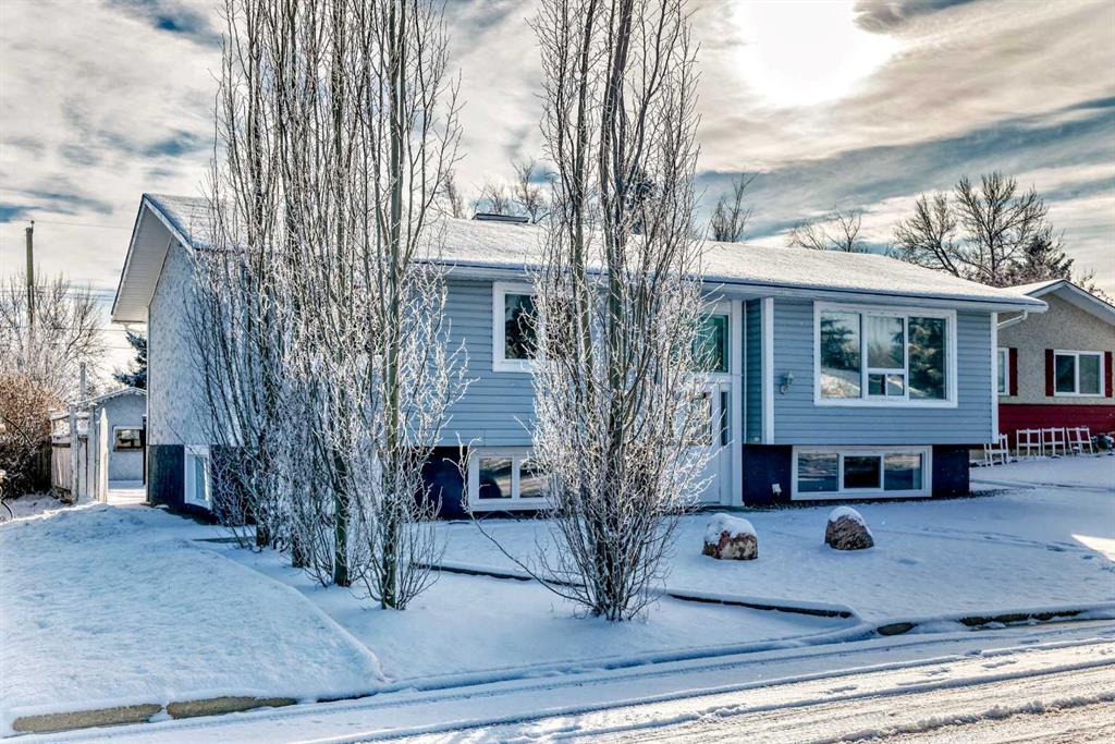 Welcome to this bi-level home located in a quiet culdesac in the charming community of Nanton. Spanning nearly 1300 sq ft of living space, providing an open floor plan that seamlessly connects the living room, dining room and kitchen. Perfect layout for everyday living and entertaining. The abundance of natural light fills the home creating a bright and airy atmosphere throughout. The primary bedroom is large enough to accommodate a king size bed and does provide a 2 pce ensuite. Walkout Basement is developed with 4 extra bedrooms and 1.5 baths but can easily be converted back to a large family room/rec with depending on what your needs are. This home also boasts a single detached heated garage and a private yard with extra parking, even room for a RV. The front of the home is maintenance free with a parking pad added providing two extra parking spots. Updates to the home include a new roof(2022), furnace(2020), garage door and heater(2021).
