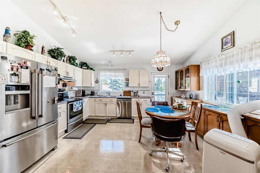 IMMEDIATE POSSESSION. This home is a must see and priced to sell!! 2 heated double GARAGES AND A CORNER LOT!!! This is a rare find!! This home has been well loved and shows pride of ownership. Walking up you will notice that yes it is a corner lot but the sidewalk does not go all the way around so just a normal amount to shovel!!! The front attached garage is 19.4x19.5 and the detached is oversized measuring 23x21 with a higher door at 7 feet. This bi-level has 4 very generous bedrooms. The main floor boasts large west and east facing windows. The living room has a natural gas fireplace and is welcoming to the open concept floor plan. The kitchen has loads and loads of cupboard and counter space, a dining area for a large table, and access to your back deck. There is also 3 bedrooms on the main floor. The primary bedroom has room for king furniture as well houses a 3 piece ensuite. Completing the main is a 4 piece bath and main floor Laundry!! The lower features a massive games area, family room with another beautiful fireplace and blower fan, 4th bedroom and another full bath. There is chairlifts installed that can be removed or stay with the home if you have limited mobility. There is lots of storage in this home as well.This home has central vacuum, a storage shed beautiful flower beds and more. This home is also situated across the street from a massive park with playground, basketball net and room to run. It is a must see!!