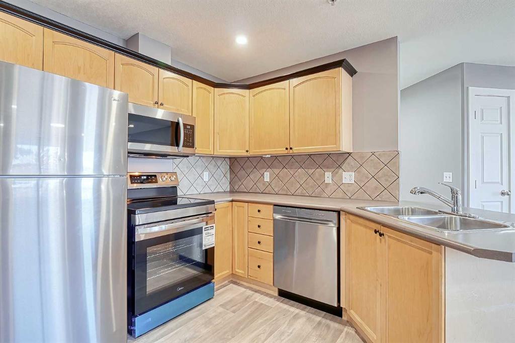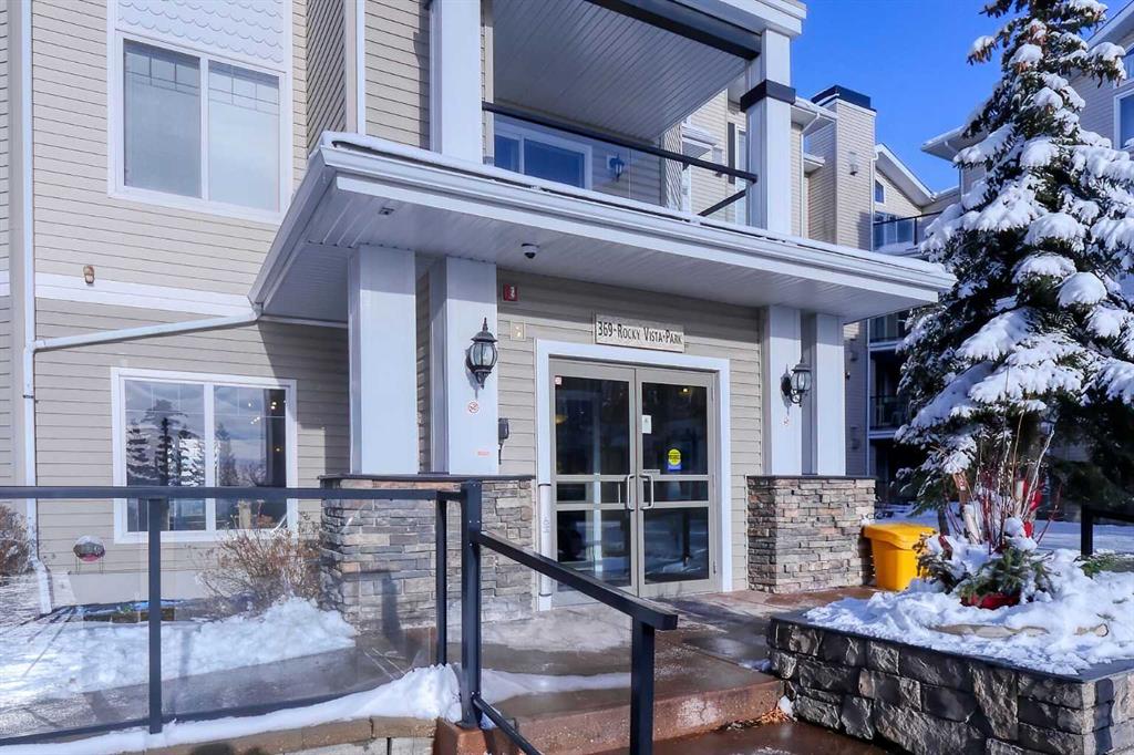 Welcome to this fully renovated and move-in ready 2 bedroom, 2 full bathroom home in the sought-after Pavilions at Rocky Ridge — the perfect fit for young professionals who want modern style, amazing amenities, and unbeatable access to transit. Although this home is located on level one, it sits well above ground level, offering extra privacy, security, and elevated south-west facing views. This unit feels nearly brand new after a major renovation that includes new flooring throughout, all new interior doors and casings, knockdown ceilings, upgraded lighting, fresh paint, and a full set of new stainless steel appliances. The open-concept layout brings in tons of natural light, with a bright living room and kitchen that flow seamlessly together. Enjoy stunning south west facing views of Canada Olympic Park and warm evening sunlight from your private balcony complete with a gas BBQ hookup. From the front side of the balcony, you can even catch a glimpse of downtown Calgary. The spacious primary bedroom features a 3-piece ensuite and walk-in closet, while the second bedroom is perfect for guests, a home office, or a roommate. You’ll also appreciate the full-size laundry room with extra storage, plus an additional exterior storage area right on the balcony. Your titled underground parking stall is conveniently located just steps from the elevator for easy year-round access. Residents of The Pavilions enjoy an impressive lineup of amenities, including a fitness centre, theatre room, library, social room, and a games room with a pool table and more. All of this in a quiet, well-managed community with quick proximity to the Rocky Ridge LRT, parks, pathways, and all Northwest Calgary conveniences.