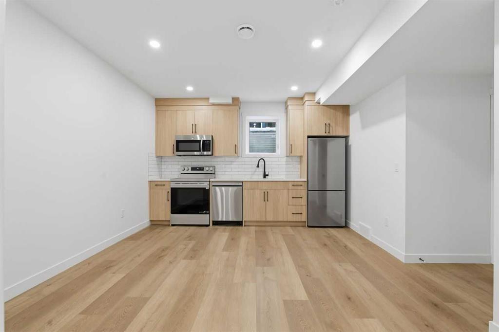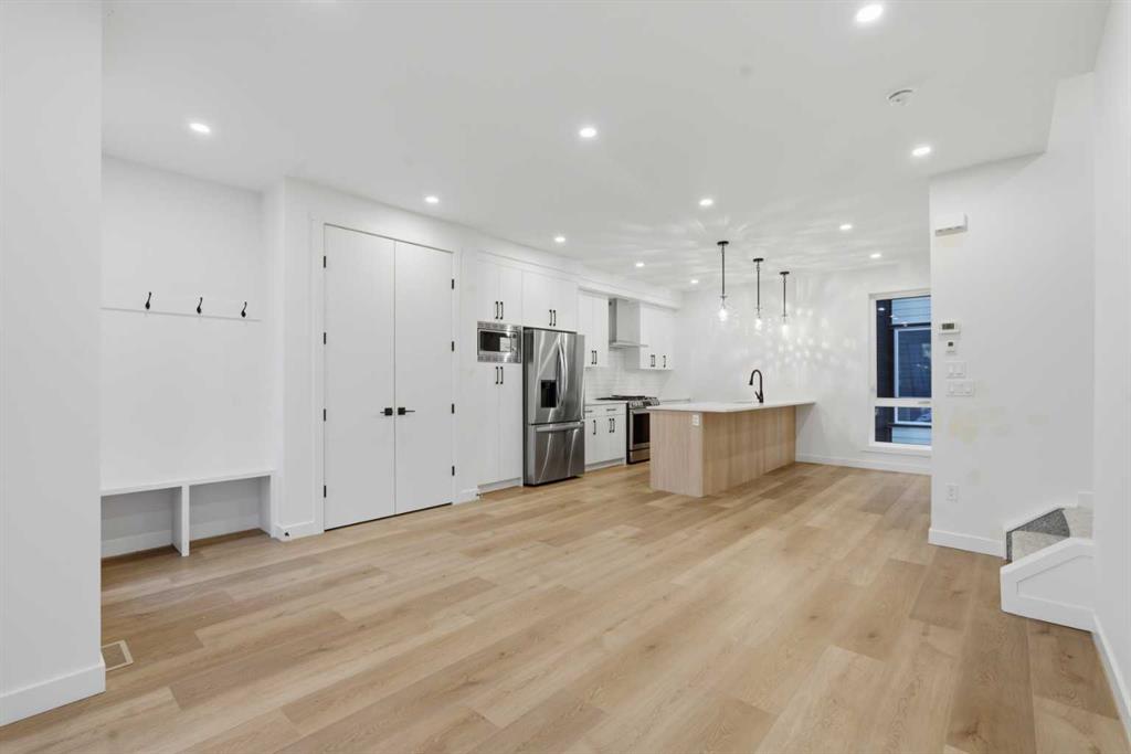 FRONT FACING 3 STOREY UNIT | LEGAL BASEMENT SUITE | DOWNTOWN VIEWS | BRAND NEW BUILD | DETACHED GARAGE | CENTRAL LOCATION | Modern style and thoughtful design define this brand new 3 storey townhome that blends upscale finishes with a highly functional layout in a central location near parks, schools, transit and everyday amenities. A bright main floor creates an inviting first impression with luxury vinyl plank flooring, recessed lighting and generous windows that bring in natural light. An open concept layout supports easy daily living as well as effortless entertaining. A spacious living area promotes relaxation with a floor to ceiling window that amplifies light and connection to the outdoors. The kitchen inspires culinary creativity with stone countertops, a gas stove, full height cabinetry, timeless subway tile and a large peninsula that provides casual seating and room to gather. An adjacent dining area promotes hosting with comfort and flow. A dedicated mud room adds daily convenience while a well positioned powder room completes this level. The second floor encourages livability with 2 well proportioned bedrooms including one with a walk-in closet and private 4 piece ensuite. Laundry on this level is a meaningful upgrade that reduces household steps while a second 4 piece bathroom adds comfort for family and guests. The entire top floor forms a private primary retreat that elevates daily living. A spacious layout provides room to unwind while a spa inspired ensuite features dual sinks and an oversized shower for a calming start and finish to each day. A massive walk-in closet with custom organizers improves easy routines and thoughtful storage. A private balcony captures stunning downtown views and creates an inviting spot for morning coffees or evening beverages. A fully developed lower level extends the home’s versatility with a self-contained legal suite featuring a private entrance, modern kitchen, comfortable living area, large bedroom, full bathroom and its own laundry. This setup creates strong potential for generating rental income or offering guests impressive comfort and independence. A front grassy area adds welcoming curb appeal while a detached single garage ensures secure parking and additional storage. Outstanding access to Confederation Park, playgrounds, groceries, transit, regional bike pathways, Nose Hill Park and downtown makes this location both convenient and connected, adding meaningful long term value.