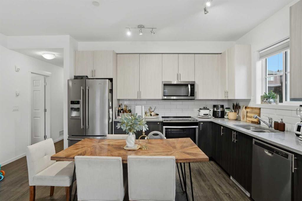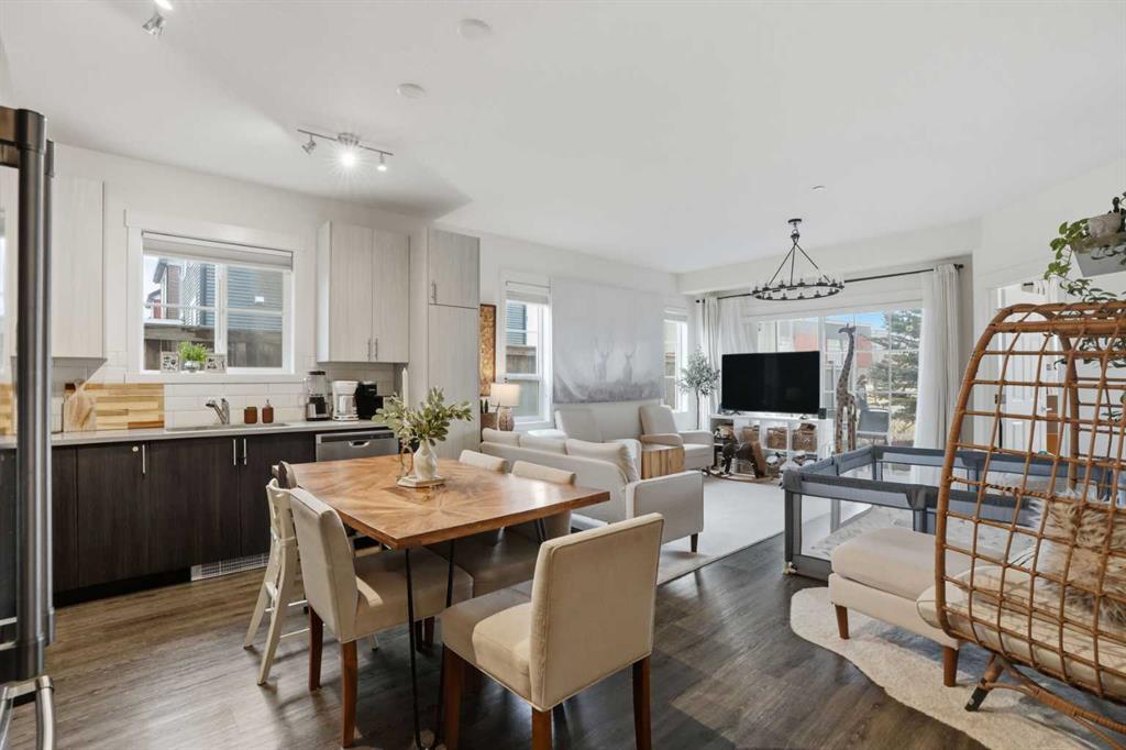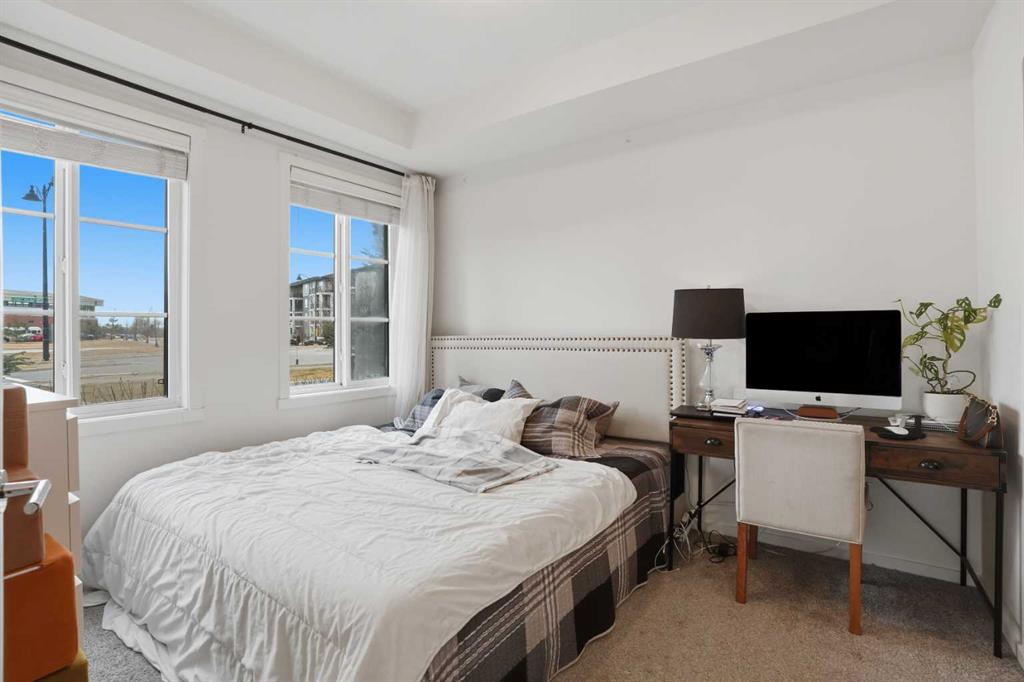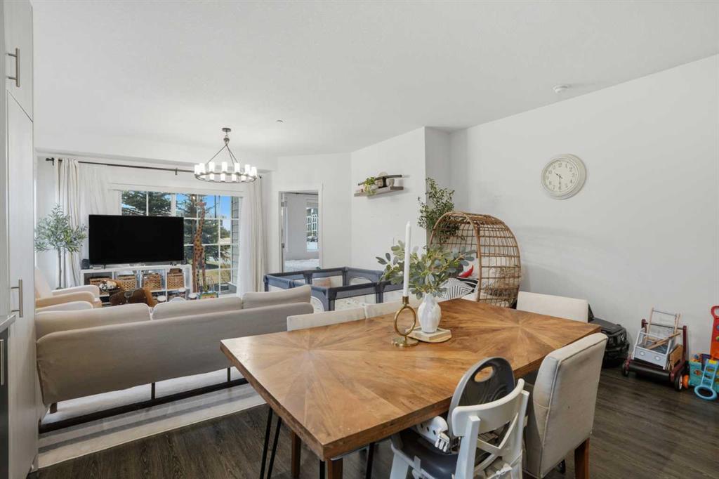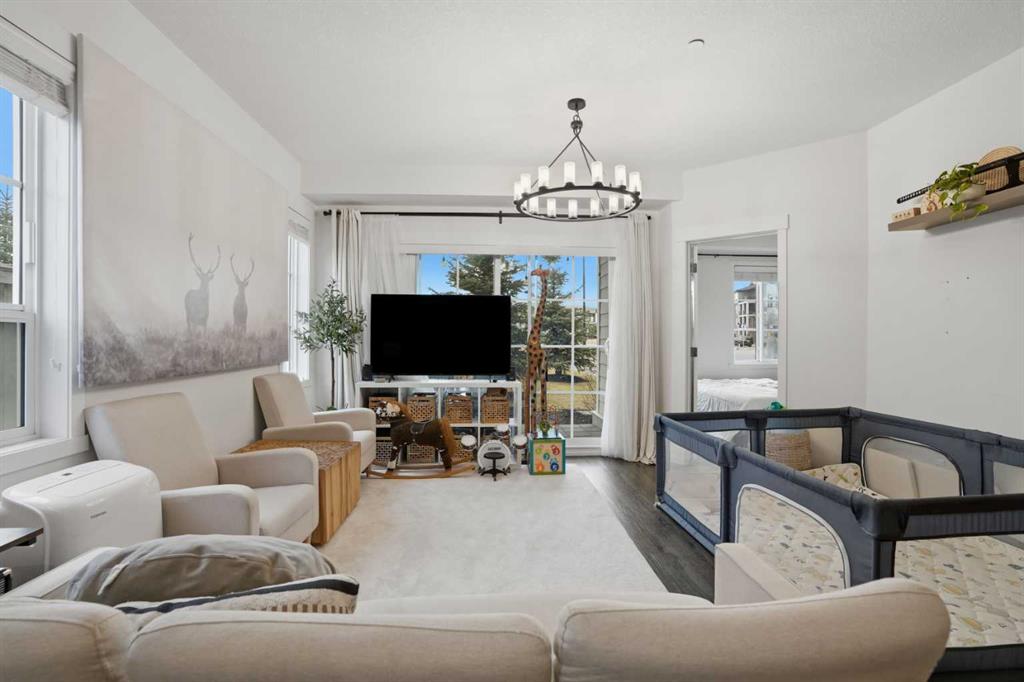 Welcome to Legacy Park II, where comfort, convenience, and sunshine filled living meet in the heart of one of Calgary’s most loved communities. This inviting two bedroom, two bathroom corner unit sits on the main floor with a southwest facing orientation that fills the home with natural light throughout the day. The open concept layout creates an easy flow between the bright living room, dining area, and modern kitchen, which features luxury vinyl plank flooring, stainless steel appliances, quartz countertops, and soaring high ceilings that enhance the airy feel. The primary bedroom enjoys its own three piece ensuite, while the second bedroom is perfect for guests, a home office, or a growing family and is complemented by a full four piece bathroom. Step outside to a private gated patio that faces south, offering the ideal place to sip your morning coffee, watch the sunsets, or create a cozy outdoor retreat for pets or entertaining. This well managed, pet friendly complex includes secure titled underground parking and a convenient storage locker located right beside your parking stall. All of this is set within steps of Legacy’s everyday amenities including Township Shopping Centre, grocery stores, restaurants, cafes, fitness studios, playgrounds, parks, and scenic walking paths that wind through ponds and green spaces. With schools, bus routes, and access to Macleod Trail and Stoney Trail only minutes away, this is a home that blends comfort, lifestyle, and unbeatable convenience.
