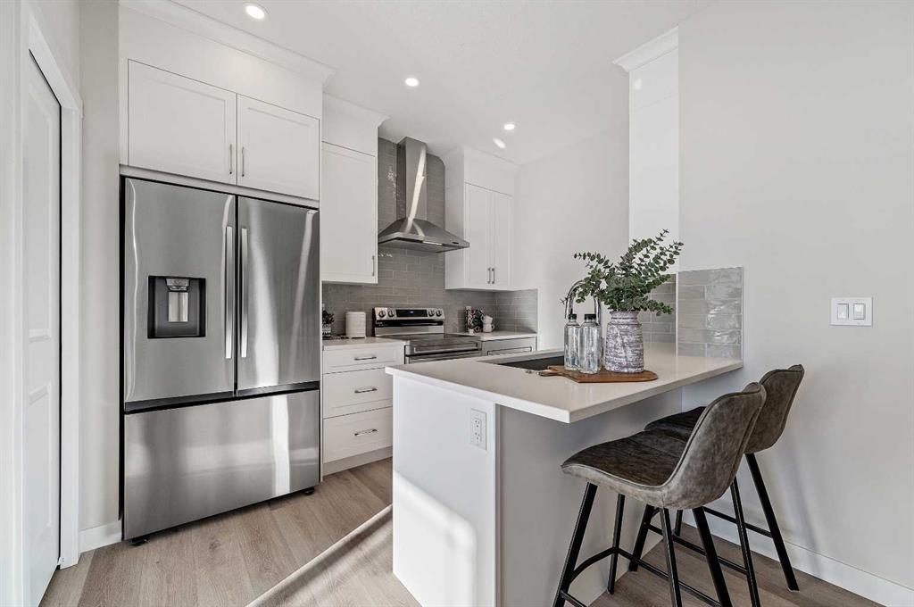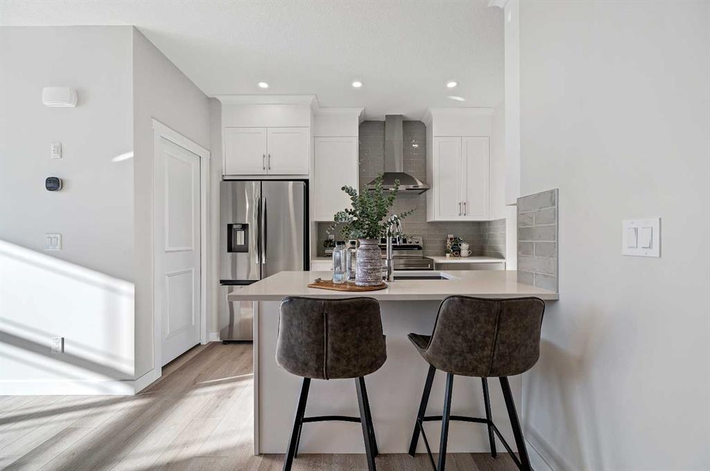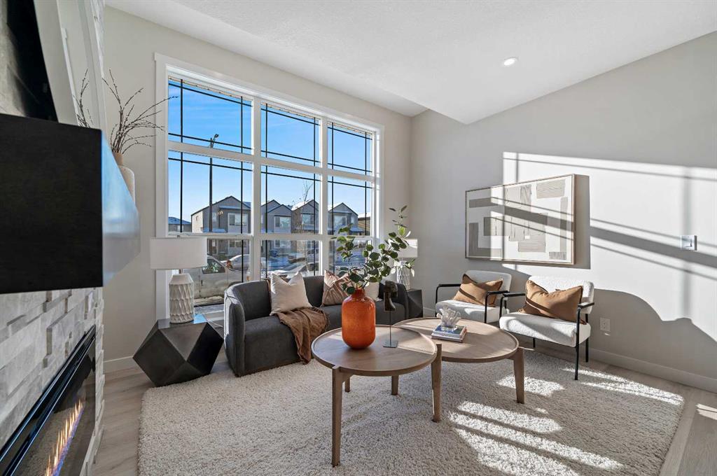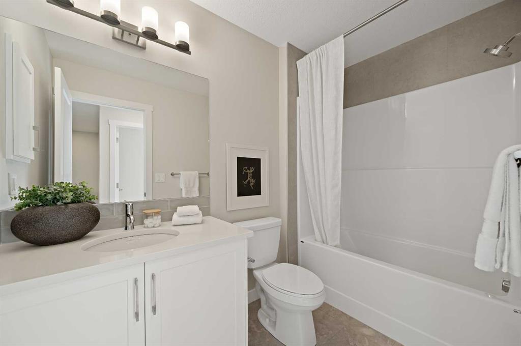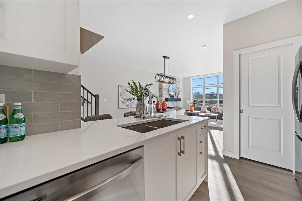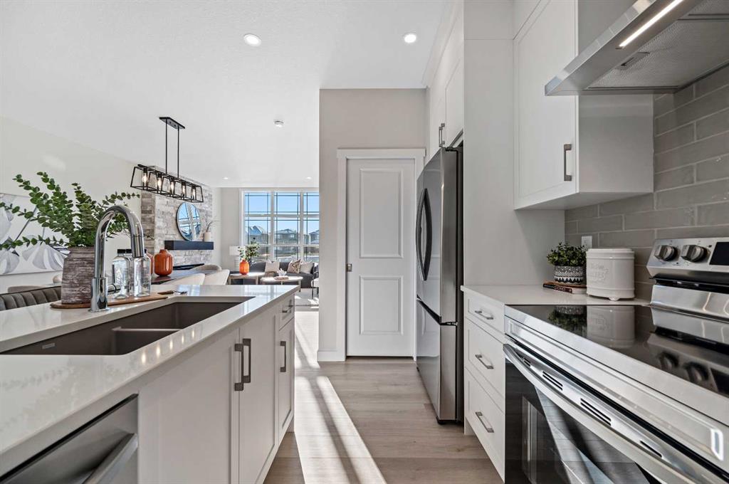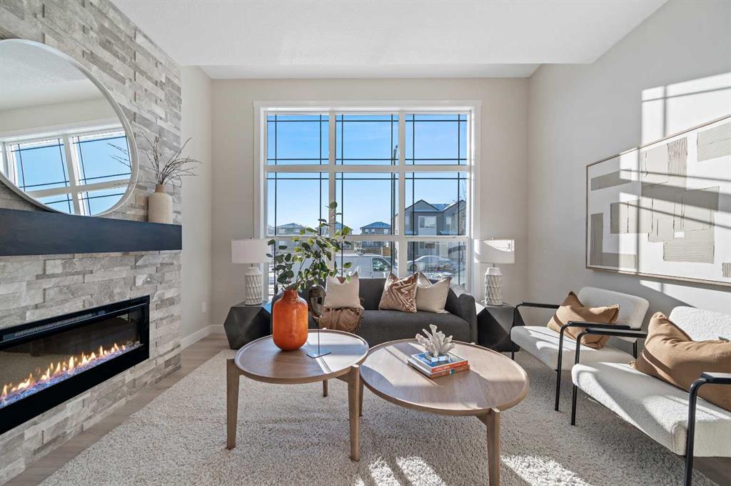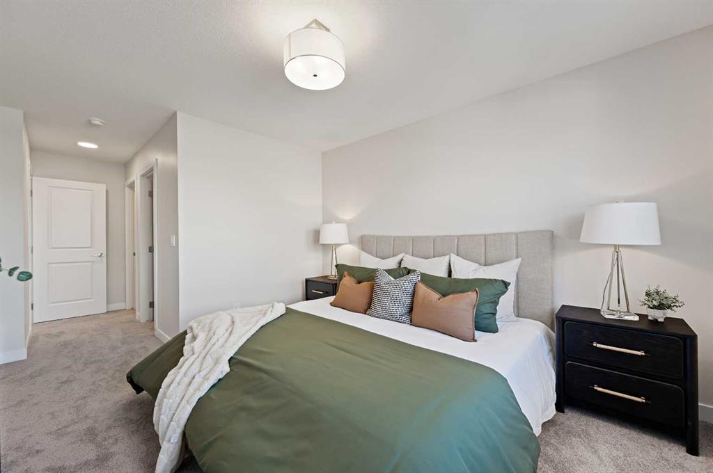 Genesis Builders introduces the Eli - a luxury street-side luxury townhome with NO CONDO FEES! The Eli townhome features an attached double garage and a rooftop patio, offering low-maintenance living. The thoughtfully designed home offers almost 1600 sq ft. plus an unfinished basement with 9-foot ceilings, ready for your ideas. Large windows and soaring ceilings on the main floor let natural light fill the open-concept living space. The chef-inspired kitchen features sleek cabinetry and stone countertops and is well-equipped with stainless-steel appliances. The kitchen is tucked away yet still feels open and inviting, providing ample room for activities in the open-concept dining and living room. A floor-to-ceiling tiled fireplace is the living room's focal point. Complementing the main floor is a convenient half bath, storage, and access to the attached double garage, which is large enough for a truck. Venturing upstairs, you will find a spacious primary retreat with a spa-like ensuite featuring a shower, his-and-hers sinks, and a walk-in closet. Two additional bedrooms, a full bathroom, a flex room, a 4-piece bathroom, and laundry facilities complete the upper level. Enjoy spending time on your upper rooftop patio, situated above the garage, which is an excellent space for entertaining. Bayview is a beautiful community with parks, benches and pathways that meander throughout the community and along the canals. Kids and adults alike will enjoy the outdoor basketball nets, gym, amphitheatre, and tennis courts, which will convert into a skating rink in the winter. Come and see for yourself all the amenities the community has to offer!