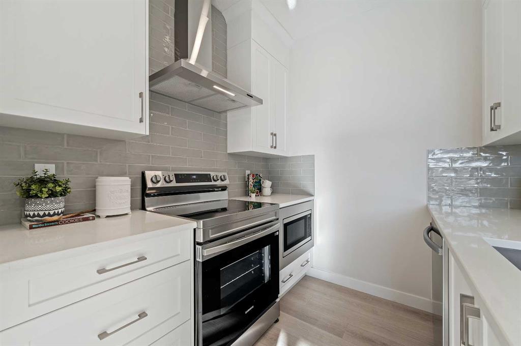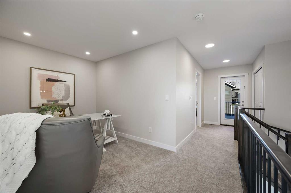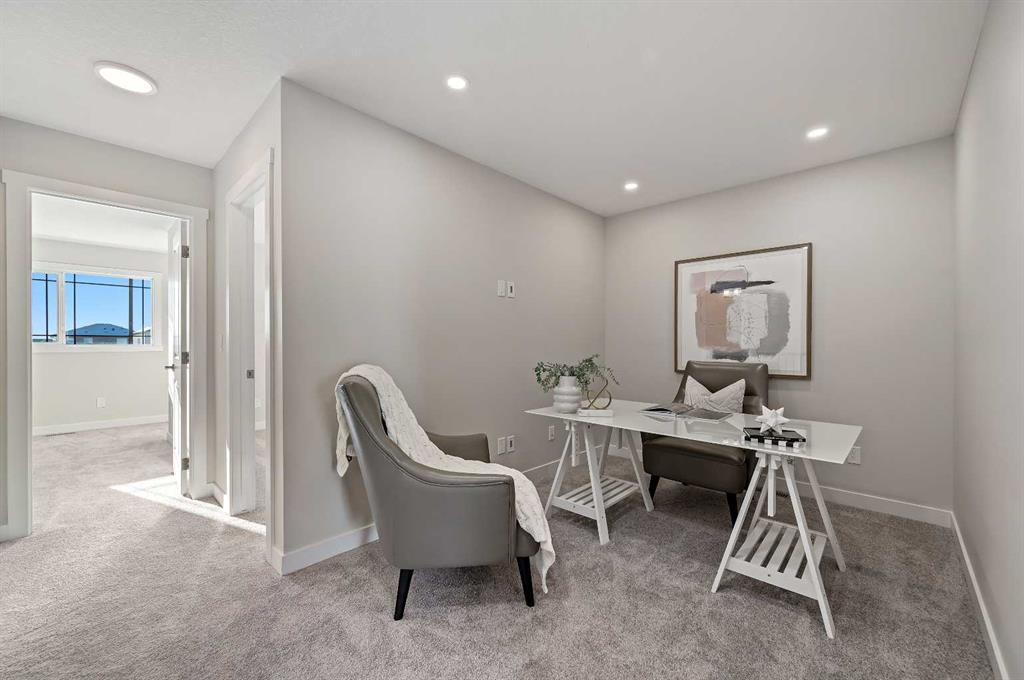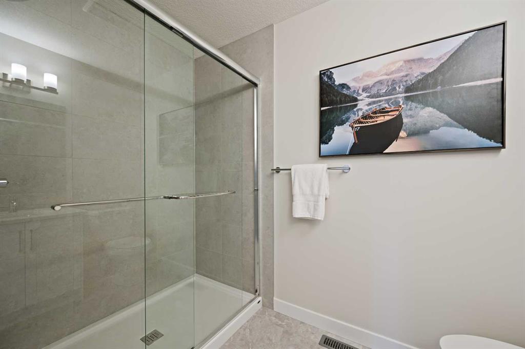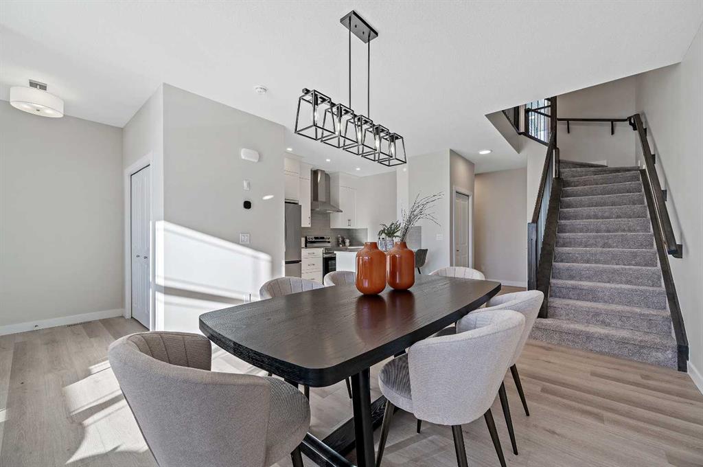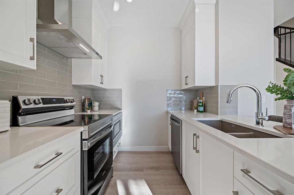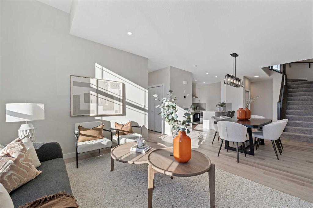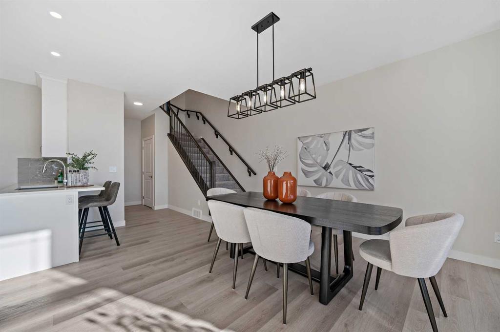 Genesis Builders introduces the Eli - a luxury street-side luxury townhome with NO CONDO FEES! The Eli townhome features an attached double garage and a rooftop patio, offering low-maintenance living. The thoughtfully designed home offers almost 1600 sq ft. plus an unfinished basement with 9-foot ceilings, ready for your ideas. Large windows and soaring ceilings on the main floor let natural light fill the open-concept living space. The chef-inspired kitchen features sleek cabinetry and stone countertops and is well-equipped with stainless-steel appliances. The kitchen is tucked away yet still feels open and inviting, providing ample room for activities in the open-concept dining and living room. A floor-to-ceiling tiled fireplace is the living room's focal point. Complementing the main floor is a convenient half bath, storage, and access to the attached double garage, which is large enough for a truck. Venturing upstairs, you will find a spacious primary retreat with a spa-like ensuite featuring a shower, his-and-hers sinks, and a walk-in closet. Two additional bedrooms, a full bathroom, a flex room, a 4-piece bathroom, and laundry facilities complete the upper level. Enjoy spending time on your upper rooftop patio, situated above the garage, which is an excellent space for entertaining. Bayview is a beautiful community with parks, benches and pathways that meander throughout the community and along the canals. Kids and adults alike will enjoy the outdoor basketball nets, gym, amphitheatre, and tennis courts, which will convert into a skating rink in the winter. Come and see for yourself all the amenities the community has to offer!