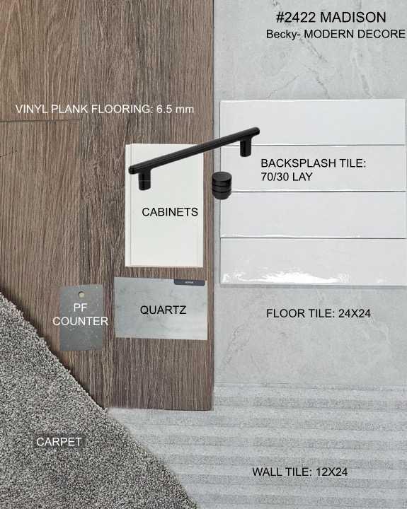 Dirham Homes Job #2422 - The Madison - Welcome to this beautifully designed brand new modified bi-level home, offering modern style and functional living spaces. Featuring 3 bedrooms and 2 bathrooms, this home is perfect for families looking for comfort and convenience. The standout feature of this home is the primary bedroom, privately located above the garage, offering a spacious retreat complete with a walk-in closet and a luxurious ensuite bathroom. The laundry room is also conveniently located upstairs. The main floor boasts a bright and airy open concept living space, perfect for both daily living and entertaining. The kitchen is outfitted with beautiful cabinetry, quartz countertops, a pantry with appliance shelf, a bar area with floating shelves and bar fridge space, and a large central island with eating bar, making it the heart of the home. Two good sized bedrooms and a full bathroom complete the main floor layout. This beautifully crafted home is ideal for those seeking and open design with practical features. Don’t miss your chance to make it yours. See virtual tour for a previously completed Madison floor plan. Note Finishing and colours may differ.