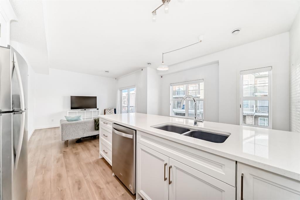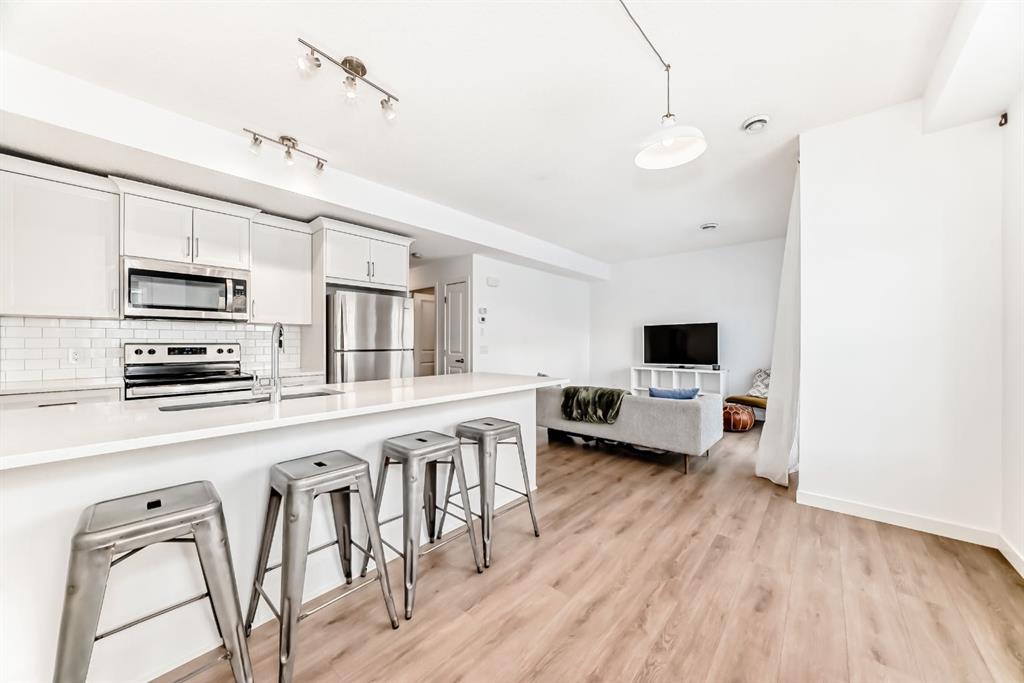 This well-kept home in The Vantage at Fireside truly stands out for its care and attention to detail. As you enter, you’re greeted by a generous front foyer with upgraded tile flooring—durable, attractive, and offering ample room for outerwear. Head up to the main level, where you’ll find a bright, open living space that combines the kitchen, dining, and living areas. The kitchen features sleek white cabinetry, light quartz countertops, luxury vinyl flooring, stainless steel appliances, and a functional island perfect for casual meals or meal prep. Just off the living room, a private balcony offers the ideal spot for grilling, unwinding, or enjoying your morning coffee. You'll also find a hallway closet, a convenient half bath with added storage and quartz counters. The top floor includes a 4-piece bathroom, separate laundry, and two well-sized bedrooms - one with a lovely private balcony, providing versatility for family, guests, or a home office setup. Come see this fantastic property for yourself—schedule a showing, fall in love, and make it yours! Fireside offers fast access to Calgary and the mountains, along with a growing list of amenities: schools, parks, pathways, playgrounds, shops, dining options, and much more.